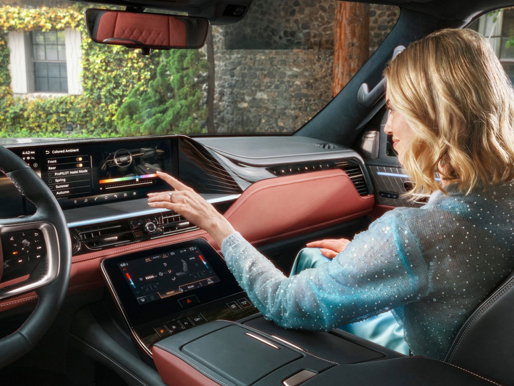 • Dramatic INFINITI Light Path welcoming feature and 64-color Personalized Ambient Lighting[*]