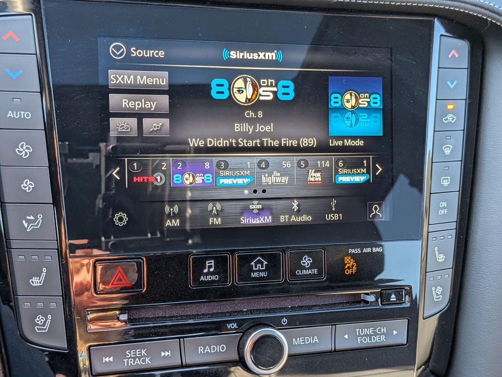 - Radio: Bose Performance Series Premium Audio -inc: 16 speakers, metallic speaker grilles on tweeters, INFINITI InTouch w/navigation and dual display system w/upper 8" and lower 7" touch screens, wireless Apple CarPlay, Android Auto, HD Radio technology, SiriusXM radio w/advanced audio features and 90-day complimentary trial, SiriusXM Traffic w/3-month complimentary trial, SiriusXM Travel Link w/3 months complimentary trial, INFINITI voice recognition, INFINITI InTouch services, Siri eyes free and Wi-Fi hotspot
