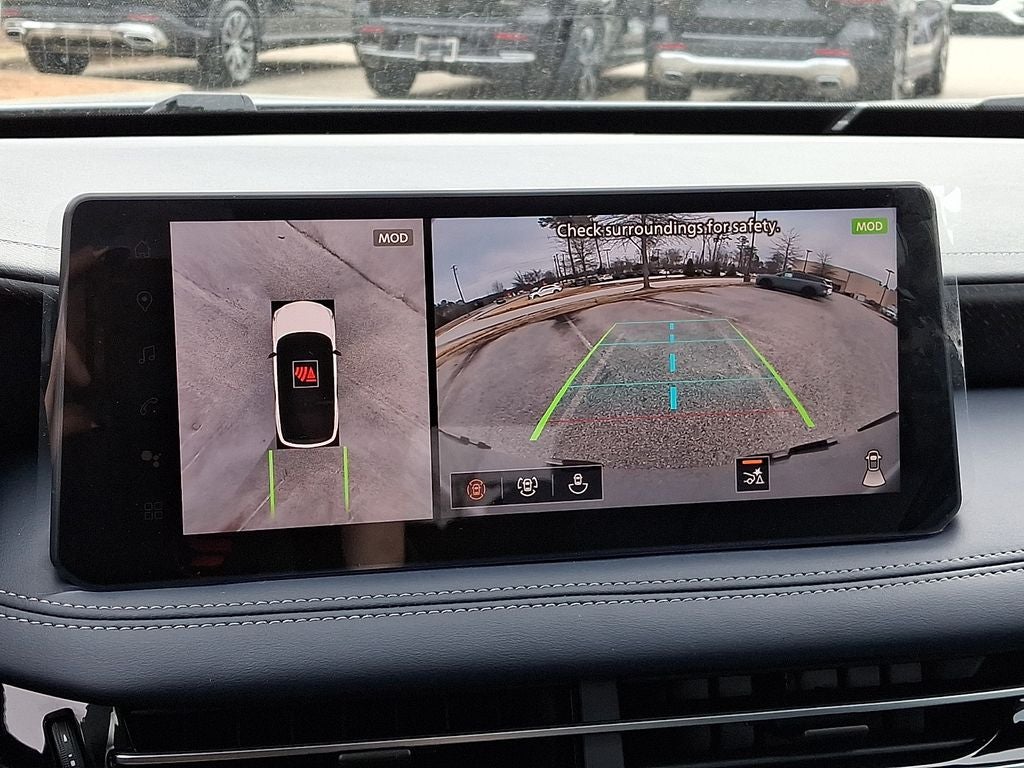 Well Equipped with Dark Cargo Package (Black Rear Bumper Film, Cargo Blocks, Cargo Mat, and Medic Kit), 17 Speakers, 3rd row seats: bench, 4-Wheel Disc Brakes, ABS brakes, Air Conditioning, Alloy wheels, AM/FM radio: SiriusXM with 360L, Anti-whiplash front head restraints, Apple CarPlay/Android Auto, Auto High-beam Headlights, Auto tilt-away steering wheel, Auto-dimming door mirrors, Auto-dimming Rear-View mirror, Automatic temperature control, Black Roof Rail Crossbars, Bose Performance Series 17-Speaker Sound System, Brake assist, Bumpers: body-color, Climate Controlled Front Bucket Seats, Delay-off headlights, Driver door bin, Driver vanity mirror, Dual front impact airbags, Dual front side impact airbags, Electronic Stability Control, Emergency communication system: INFINITI InTouch, Four wheel independent suspension, Front anti-roll bar, Front Bucket Seats, Front Center Armrest, Front dual zone A/C, Front reading lights, Fully automatic headlights, Garage door transmitter: HomeLink, Genuine wood door panel insert, Heated door mirrors, Heated front seats, Heated rear seats, Heated steering wheel, Illuminated entry, INFINITI Radiant Dark Illuminated Kick Plates, Knee airbag, Leather Shift Knob, Leather steering wheel, Low tire pressure warning, Memory seat, Navigation system: Google Built-in, Occupant sensing airbag, Outside temperature display, Overhead airbag, Overhead console, Panic alarm, Passenger door bin, Passenger vanity mirror, Power door mirrors, Power driver seat, Power Liftgate, Power moonroof: Panoramic, Power passenger seat, Power steering, Power windows, Premium Paint, Radio data system, Radio: Klipsch Premium Audio System, Rain sensing wipers, Rear air conditioning, Rear anti-roll bar, Rear reading lights, Rear side impact airbag, Rear window defroster, Rear window wiper, Reclining 3rd row seat, Remote keyless entry, Security system, Speed control, Speed-sensing steering, Speed-Sensitive Wipers, Splash Guards, Split folding rear seat, Spoiler, Steering wheel memory, Steering wheel mounted audio controls, Tachometer, Tailorfit-Appointed Seating Surfaces, Telescoping steering wheel, Tilt steering wheel, Traction control, Trip computer, Turn signal indicator mirrors, Variably intermittent wipers, Ventilated front seats, and Wheels: 20 x 8J Unique Sporty Machined Aluminum Alloy.