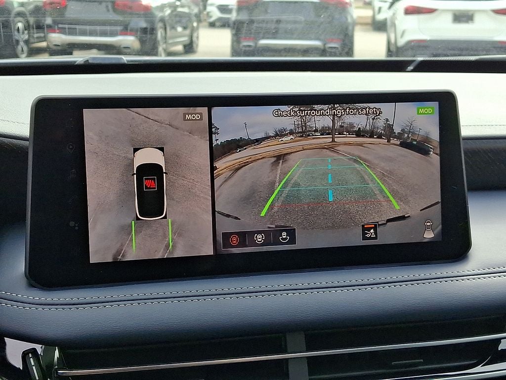 Well Equipped with Dark Cargo Package (Black Rear Bumper Film, Cargo Blocks, Cargo Mat, and Medic Kit), 17 Speakers, 3rd row seats: bench, 4-Wheel Disc Brakes, ABS brakes, Air Conditioning, Alloy wheels, AM/FM radio: SiriusXM with 360L, Anti-whiplash front head restraints, Apple CarPlay/Android Auto, Auto High-beam Headlights, Auto tilt-away steering wheel, Auto-dimming door mirrors, Auto-dimming Rear-View mirror, Automatic temperature control, Black Roof Rail Crossbars, Bose Performance Series 17-Speaker Sound System, Brake assist, Bumpers: body-color, Climate Controlled Front Bucket Seats, Delay-off headlights, Driver door bin, Driver vanity mirror, Dual front impact airbags, Dual front side impact airbags, Electronic Stability Control, Emergency communication system: INFINITI InTouch, Four wheel independent suspension, Front anti-roll bar, Front Bucket Seats, Front Center Armrest, Front dual zone A/C, Front reading lights, Fully automatic headlights, Garage door transmitter: HomeLink, Genuine wood door panel insert, Heated door mirrors, Heated front seats, Heated rear seats, Heated steering wheel, Illuminated entry, INFINITI Radiant Dark Illuminated Kick Plates, Knee airbag, Leather Shift Knob, Leather steering wheel, Low tire pressure warning, Memory seat, Navigation system: Google Built-in, Occupant sensing airbag, Outside temperature display, Overhead airbag, Overhead console, Panic alarm, Passenger door bin, Passenger vanity mirror, Power door mirrors, Power driver seat, Power Liftgate, Power moonroof: Panoramic, Power passenger seat, Power steering, Power windows, Premium Paint, Radio data system, Radio: Klipsch Premium Audio System, Rain sensing wipers, Rear air conditioning, Rear anti-roll bar, Rear reading lights, Rear side impact airbag, Rear window defroster, Rear window wiper, Reclining 3rd row seat, Remote keyless entry, Security system, Speed control, Speed-sensing steering, Speed-Sensitive Wipers, Splash Guards, Split folding rear seat, Spoiler, Steering wheel memory, Steering wheel mounted audio controls, Tachometer, Tailorfit-Appointed Seating Surfaces, Telescoping steering wheel, Tilt steering wheel, Traction control, Trip computer, Turn signal indicator mirrors, Variably intermittent wipers, Ventilated front seats, and Wheels: 20 x 8J Unique Sporty Machined Aluminum Alloy.