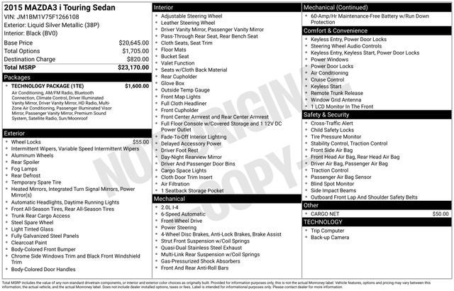 2015 Mazda Mazda3 i Touring Liquid Silver Metallic Odometer is 28420 miles below market average! 30/41 City/Highway MPG