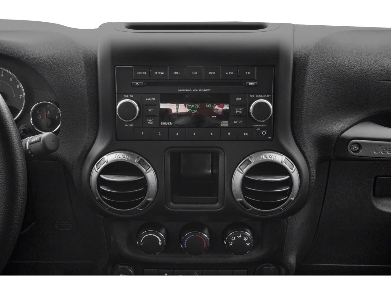 What makes us different? We specialize in hand selecting our pre-owned inventory and providing an amazing array of vehicles on our lot here in Wilmington, NC. We keep about 1000+ cars on the lot at any given time and find that being priced aggressively upfront allows us to save time, complete the deal process and keep the best inventory possible. The price you see is our very best price! All of our vehicles are priced below market value. We provide a hassle-free buying experience. Quick Order Package 23S (17 x 7.5 Aluminum Wheels, Air Conditioning, Chrome/Leather Wrapped Shift Knob, and Leather Wrapped Steering Wheel), Trailer Tow Group (Class II Receiver Hitch and Trailer Tow w/4-Pin Connector Wiring), 16 x 7.0 Luxury Styled Steel Wheels, 4-Wheel Disc Brakes, 8 Speakers, ABS brakes, AM/FM radio, Brake assist, CD player, Cloth Bucket Seats, Compass, Driver door bin, Driver vanity mirror, Dual front impact airbags, Electronic Stability Control, Front anti-roll bar, Front Bucket Seats, Front Center Armrest w/Storage, Front fog lights, Integrated roll-over protection, Low tire pressure warning, Normal Duty Suspension, Occupant sensing airbag, Outside temperature display, Passenger door bin, Passenger vanity mirror, Power steering, Radio: Uconnect 130 AM/FM/CD/MP3, Rear anti-roll bar, Speed control, Steering wheel mounted audio controls, Sunrider Soft Top, Tachometer, Tilt steering wheel, Traction control, Trip computer, and Variably intermittent wipers. Awards: