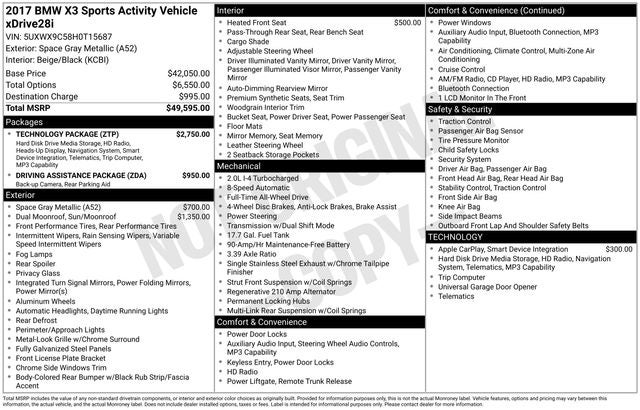 2017 BMW X3 xDrive28i Space Gray Metallic 21/28 City/Highway MPG