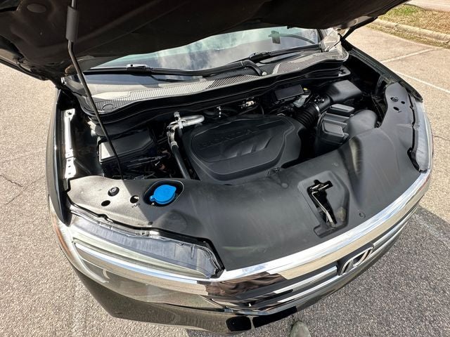Equipped with 18 Alloy Wheels, 3rd row seats: split-bench, 4-Wheel Disc Brakes, 4.25 Axle Ratio, 7 Speakers, ABS brakes, Air Conditioning, Alloy wheels, AM/FM radio: SiriusXM, Apple CarPlay/Android Auto, Auto-dimming Rear-View mirror, Automatic temperature control, Brake assist, Bumpers: body-color, Compass, Delay-off headlights, Driver door bin, Driver vanity mirror, Dual front impact airbags, Dual front side impact airbags, Electronic Stability Control, Emergency communication system: HondaLink Assist, Exterior Parking Camera Rear, Four wheel independent suspension, Front anti-roll bar, Front Bucket Seats, Front Center Armrest, Front dual zone A/C, Front fog lights, Front reading lights, Fully automatic headlights, Garage door transmitter: HomeLink, Heated Front Bucket Seats, Heated front seats, Illuminated entry, Leather Shift Knob, Leather-Trimmed Seats, Low tire pressure warning, Occupant sensing airbag, Outside temperature display, Overhead airbag, Overhead console, Panic alarm, Passenger door bin, Passenger vanity mirror, Power door mirrors, Power driver seat, Power Liftgate, Power moonroof, Power passenger seat, Power steering, Power windows, Radio data system, Radio: AM/FM Audio System, Rear air conditioning, Rear anti-roll bar, Rear reading lights, Rear seat center armrest, Rear window defroster, Rear window wiper, Remote keyless entry, Security system, SiriusXM Radio, Speed control, Speed-sensing steering, Speed-Sensitive Wipers, Split folding rear seat, Spoiler, Steering wheel mounted audio controls, Tachometer, Telescoping steering wheel, Tilt steering wheel, Traction control, Trip computer, and Variably intermittent wipers.