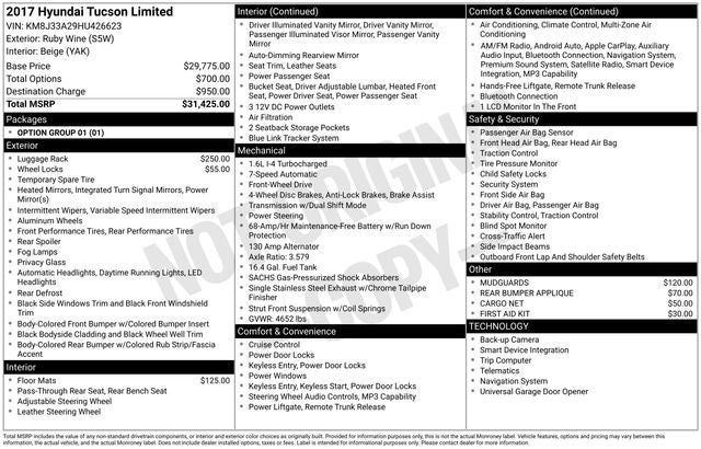 2017 Hyundai Tucson Limited Ruby Wine 25/30 City/Highway MPG
