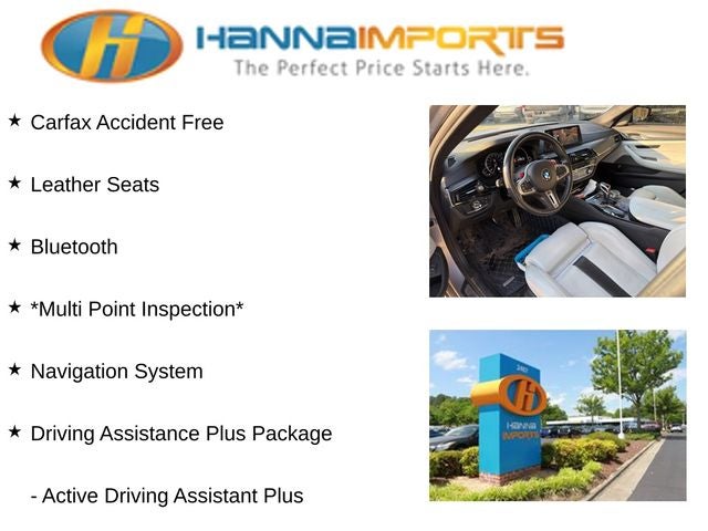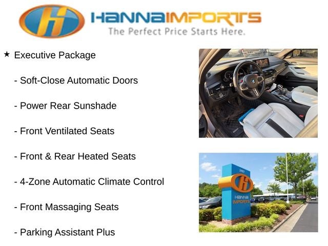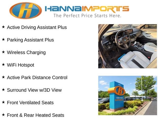 Why shop with Hanna Imports? We specialize in hand-selecting top-quality used cars, trucks, and SUVs for drivers across Raleigh, Durham, Cary, Chapel Hill, and the greater Triangle area of North Carolina. Our massive selection of 1,000+ vehicles on our Raleigh lot is carefully curated to include the most sought-after models, all priced below market value. We believe in transparency and efficiency—our vehicles are aggressively priced from the start, which means no haggling, no hassle, and no wasted time. The price you see is our absolute best price. Whether you're coming from Wake Forest, Apex, Garner, or anywhere in central NC, we’re committed to making your car-buying experience smooth, affordable, and enjoyable. Come see why Hanna Imports is one of the most trusted used car dealerships in North Carolina! Used BMW M5 in Raleigh. Used BMW M5 in North Carolina, Driving Assistance Plus Package (Active Driving Assistant Plus), Executive Package (4-Zone Automatic Climate Control, Active Park Distance Control, Front & Rear Heated Seats, Front Massaging Seats, Front Ventilated Seats, Parking Assistant Plus, Power Rear Sunshade, Rear-View Camera, Soft-Close Automatic Doors, Surround View w/3D View, WiFi Hotspot, and Wireless Charging), Silverstone Leather, Extended Merino Leather Upholstery, Navigation System, 16 Speakers, 4-Wheel Disc Brakes, ABS brakes, Adaptive suspension, Advanced Real-Time Traffic Information, Air Conditioning, Alloy wheels, Aluminum Carbon Structure Dark Interior Trim, AM/FM radio: SiriusXM, Auto High-beam Headlights, Auto tilt-away steering wheel, Auto-dimming door mirrors, Auto-dimming Rear-View mirror, Automatic temperature control, Brake assist, Bumpers: body-color, CD player, Delay-off headlights, Driver door bin, Driver vanity mirror, Dual front impact airbags, Dual front side impact airbags, Electronic Stability Control, Emergency communication system: BMW Assist eCall, Enhanced USB & Bluetooth®, Exterior Parking Camera Rear, Four wheel independent suspension, Front anti-roll bar, Front Bucket Seats, Front Center Armrest, Front dual zone A/C, Front reading lights, Fully automatic headlights, Garage door transmitter, harman/kardon Surround Sound System, harman/kardon® Speakers, Heads-Up Display, Heated door mirrors, Heated Front Seats, Heated front seats, Heated steering wheel, Illuminated entry, In-Dash CD Player, Leather Shift Knob, Leather steering wheel, Low tire pressure warning, Memory seat, Multi-Function Seats w/Lumbar Support, Occupant sensing airbag, Outside temperature display, Overhead airbag, Panic alarm, Passenger door bin, Passenger vanity mirror, Power door mirrors, Power driver seat, Power Front Seats, Power passenger seat, Power steering, Power windows, Radio data system, Radio: AM/FM Audio System, Rain sensing wipers, Rear anti-roll bar, Rear reading lights, Rear seat center armrest, Rear window defroster, Remote keyless entry, Security system, SiriusXM Satellite Radio w/1 Year All Access, Speed control, Speed-sensing steering, Speed-Sensitive Wipers, Split folding rear seat, Spoiler, Sport steering wheel, Steering wheel memory, Steering wheel mounted audio controls, Tachometer, Telescoping steering wheel, Tilt steering wheel, Traction control, Trip computer, Turn signal indicator mirrors, Variably intermittent wipers, Wheels: 19 x 9.5 Fr & 19 x 10.5 Rr, and Wheels: 20 x 9.5 Fr & 20 x 10.5 Rr.