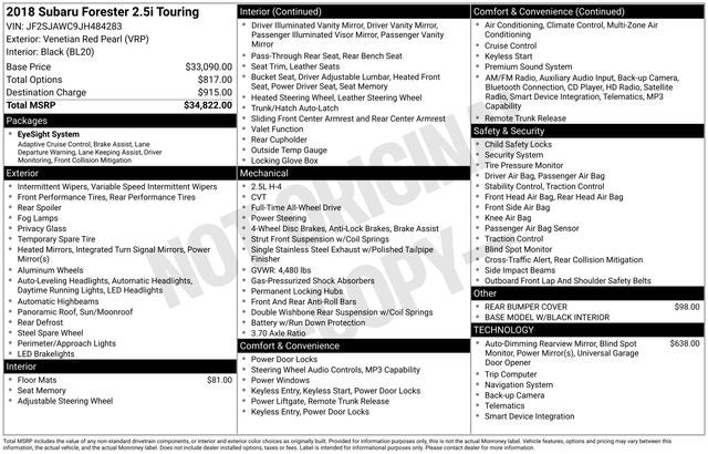 2018 Subaru Forester 2.5i Touring Venetian Red Pearl 26/32 City/Highway MPG