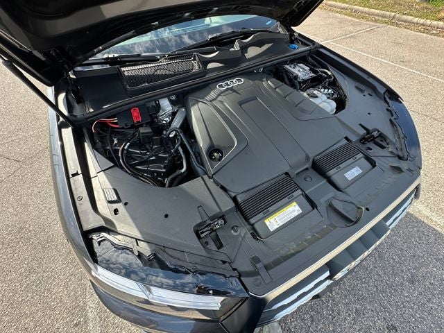 Equipped with Cold Weather Package (3-Spoke Multifunction Steering Wheel w/Paddles, Black Rubber All-Weather Floor Mats (Set of 4), and Heated Rear Seats), Convenience Package (Audi Phone Box w/Wireless Charging, Audi Side Assist w/Pre Sense Rear, and Heated Auto-Dimming Power Folding Exterior Mirrors), LED Interior Lighting Package, Premium Plus Package (3D Bose Surround Sound System, Audi Virtual Cockpit, LED Headlights w/Dynamic Indicators, and Topview Camera System), Towing Package, Warm Weather Package (4-Zone Automatic Climate Control, Driver & Passenger Front Seats w/Ventilation, and Rear Door/Side Windows & Tailgate Sunshades), Navigation system: MMI Navigation plus, Power Liftgate, Power moonroof, 10 Speakers, 3.76 Axle Ratio, 3rd row seats: bench, 4-Wheel Disc Brakes, 7 Pin Connector for Towing Hitch, ABS brakes, Air Conditioning, Alloy wheels, AM/FM radio: SiriusXM, Audi smartphone interface (Apple CarPlay/Android Auto), Auto-dimming Rear-View mirror, Automatic temperature control, Brake assist, Bumpers: body-color, CD player, Compass, Delay-off headlights, Driver door bin, Driver vanity mirror, Driver's Seat Mounted Armrest, Dual front impact airbags, Dual front side impact airbags, Electronic Stability Control, Emergency communication system: Audi connect CARE, Exterior Parking Camera Rear, Four wheel independent suspension, Front & Rear Doors Audi Beam-Rings, Front anti-roll bar, Front Bucket Seats, Front dual zone A/C, Front fog lights, Front reading lights, Fully automatic headlights, Garage door transmitter: HomeLink, Genuine wood dashboard insert, Genuine wood door panel insert, Heated door mirrors, Heated Front Bucket Seats, Heated front seats, High intensity discharge headlights: Xenon plus, Illuminated entry, Leather Seating Surfaces, Leather Shift Knob, Leather steering wheel, Low tire pressure warning, Memory seat, Occupant sensing airbag, Outside temperature display, Overhead airbag, Panic alarm, Passenger door bin, Passenger seat mounted armrest, Passenger vanity mirror, Power door mirrors, Power driver seat, Power passenger seat, Power steering, Power windows, Radio data system, Radio: Audi MMI Navigation Plus, Rain sensing wipers, Rear air conditioning, Rear anti-roll bar, Rear fog lights, Rear Load Sill/Door Cup/Door Edge Paint Protection, Rear reading lights, Rear seat center armrest, Rear Seat Entertainment Preparation, Rear window defroster, Rear window wiper, Remote keyless entry, Roof rack: rails only, Security system, Speed control, Speed-sensing steering, Split folding rear seat, Spoiler, Steering wheel memory, Steering wheel mounted audio controls, Tachometer, Telescoping steering wheel, Tilt steering wheel, Traction control, Trip computer, Turn signal indicator mirrors, USB Cables, Variably intermittent wipers, Vehicle Jack, Wheels: 18 5-Arm Design, and Wheels: 20 10-Spoke-Star Design Bi-Color.