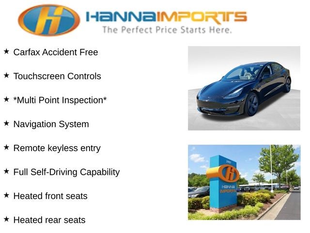 Why shop with Hanna Imports? We specialize in hand-selecting top-quality used cars, trucks, and SUVs for drivers across Raleigh, Durham, Cary, Chapel Hill, and the greater Triangle area of North Carolina. Our massive selection of 1,000+ vehicles on our Raleigh lot is carefully curated to include the most sought-after models, all priced below market value. We believe in transparency and efficiency—our vehicles are aggressively priced from the start, which means no haggling, no hassle, and no wasted time. The price you see is our absolute best price. Whether you're coming from Wake Forest, Apex, Garner, or anywhere in central NC, we’re committed to making your car-buying experience smooth, affordable, and enjoyable. Come see why Hanna Imports is one of the most trusted used car dealerships in North Carolina! Used Tesla Model 3 in Raleigh. Used Tesla Model 3 in North Carolina, Model 3 Long Range, AWD, Heated front seats, Heated rear seats, Navigation System, Remote keyless entry, 15 Speakers, 4-Wheel Disc Brakes, ABS brakes, Air Conditioning, Alloy wheels, Auto High-beam Headlights, Auto-dimming door mirrors, Auto-dimming Rear-View mirror, Automatic temperature control, Brake assist, Bumpers: body-color, Compass, Delay-off headlights, Driver door bin, Driver vanity mirror, Dual front impact airbags, Dual front side impact airbags, Electronic Stability Control, Exterior Parking Camera Rear, Four wheel independent suspension, Front anti-roll bar, Front Bucket Seats, Front Center Armrest, Front dual zone A/C, Front fog lights, Front reading lights, Fully automatic headlights, Genuine wood dashboard insert, Heated door mirrors, Illuminated entry, Knee airbag, Low tire pressure warning, Memory seat, Occupant sensing airbag, Outside temperature display, Overhead airbag, Passenger door bin, Passenger vanity mirror, Power door mirrors, Power driver seat, Power passenger seat, Power steering, Power windows, Premium Audio System, Premium Heated Front Bucket Seats, Premium Seat Trim, Radio data system, Rear reading lights, Rear seat center armrest, Rear window defroster, Security system, Speed control, Speed-sensing steering, Split folding rear seat, Steering wheel memory, Steering wheel mounted A/C controls, Steering wheel mounted audio controls, Telescoping steering wheel, Tilt steering wheel, Traction control, Trip computer, and Variably intermittent wipers.