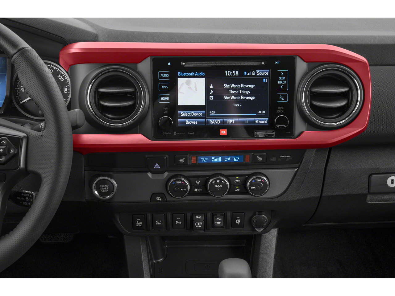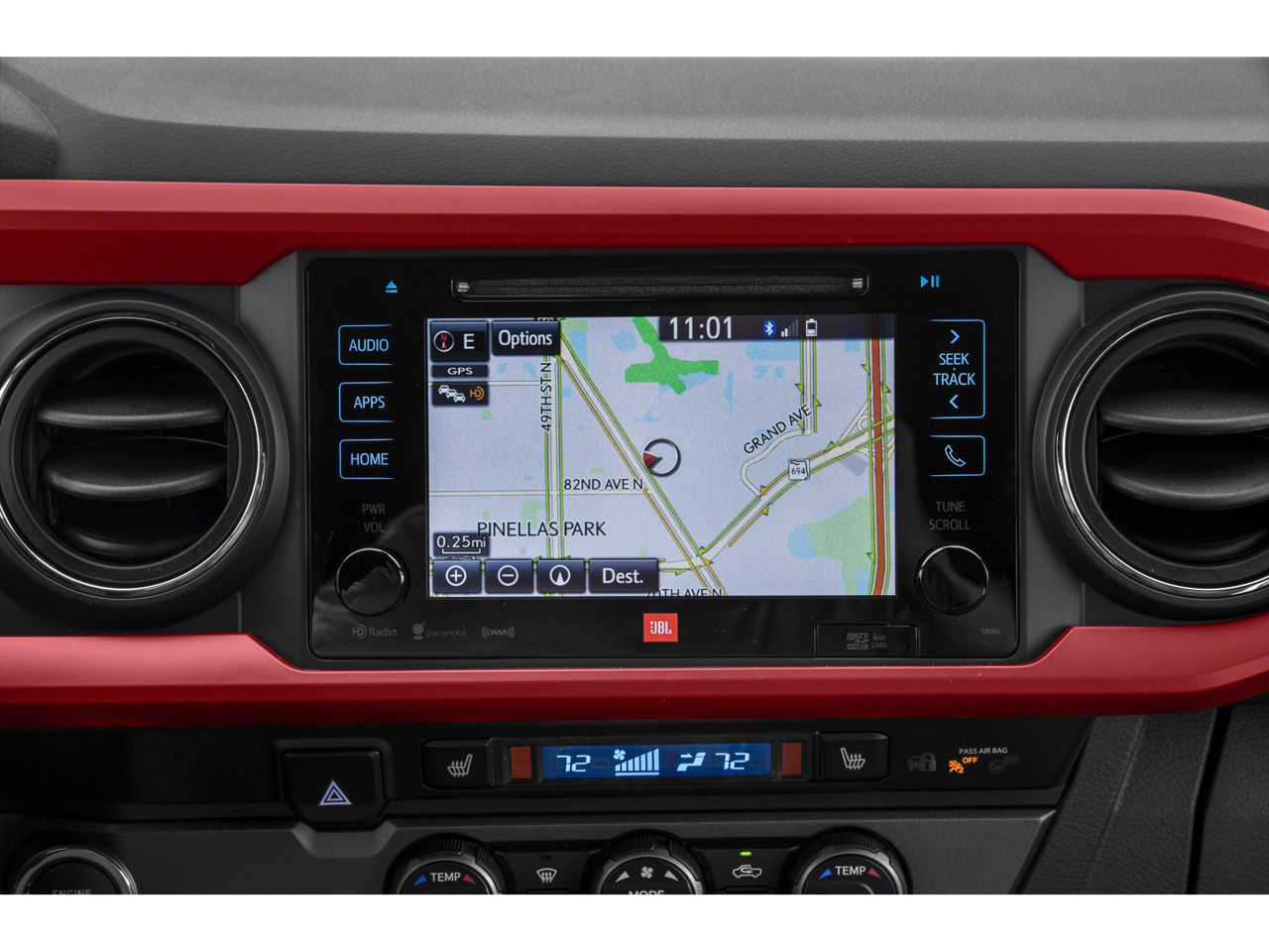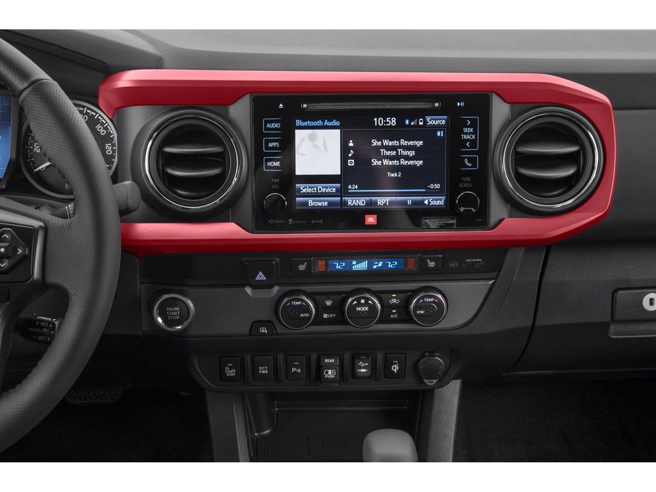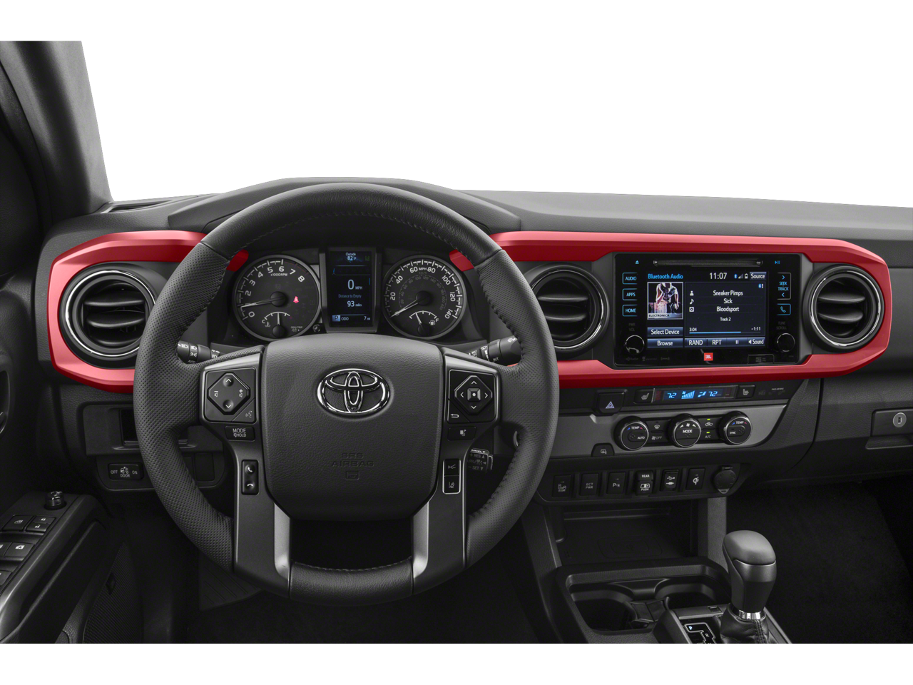 Equipped with TRD Sport Package (PY) (120V/400W Deck Mounted AC Power, Auto-Dimming Inside Rear-View Mirror w/Compass, Color-Keyed Overfenders, Engine Immobilizer, LED Daytime Running Lamps, Power Sliding Rear Window w/Privacy Glass, Smart Key w/Push Button Start, Variable Intermittent Wipers, and Wide Angle Front Fog Lamps), 4WD, Navigation System, 6 Speakers, ABS brakes, Air Conditioning, All Weather Floor Liner & Door Sill Protector Pkg, Alloy wheels, AM/FM radio: SiriusXM, Anti-whiplash front head restraints, Auto High-beam Headlights, Auto-dimming Rear-View mirror, Axle Ratio: 3.91, Blackout Emblem Overlays, Blind Spot Monitor w/Rear Cross Traffic Alert, Brake assist, Bumpers: body-color, CD player, Door Edge Guards, Driver door bin, Dual front impact airbags, Dual front side impact airbags, Dual Zone Automatic Climate Control, Electronic Stability Control, Entune App Suite, Exterior Parking Camera Rear, Fabric Seat Trim (FD), Front anti-roll bar, Front Bucket Seats, Front Center Armrest, Front fog lights, Front reading lights, Front wheel independent suspension, Illuminated entry, Knee airbag, Leather Seat Trim, Leather Shift Knob, Low tire pressure warning, Mudguards, Occupant sensing airbag, Outside temperature display, Overhead airbag, Overhead console, Panic alarm, Passenger door bin, Power door mirrors, Power steering, Power windows, Radio: Entune Premium JBL AM/FM/CD w/Nav & App Ste, Radio: Entune Premium w/AM/FM/CD/Nav/App Suite, Rear Parking Assist Sonar, Rear step bumper, Remote keyless entry, Remote Keyless Entry System, Security system, Speed control, Speed-sensing steering, Split folding rear seat, Steering wheel mounted audio controls, Tachometer, Telescoping steering wheel, Tilt steering wheel, Traction control, Trip computer, Turn signal indicator mirrors, Variably intermittent wipers, and Wheels: 17 x 7.5 Machined Alloy.