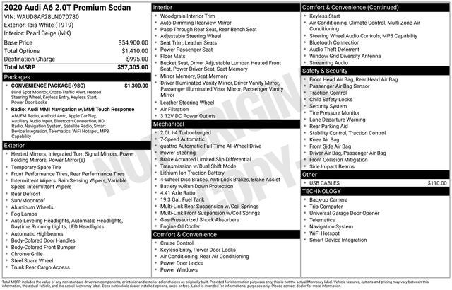 2020 Audi A6 2.0T Premium quattro Glacier White Metallic Odometer is 19219 miles below market average! 24/32 City/Highway MPG