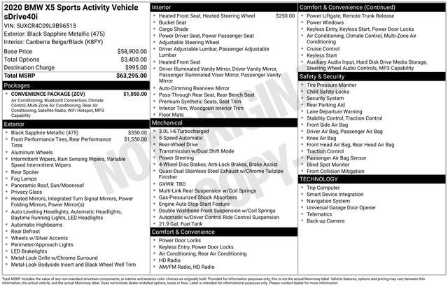 2020 BMW X5 sDrive40i Black Sapphire Metallic 21/26 City/Highway MPG