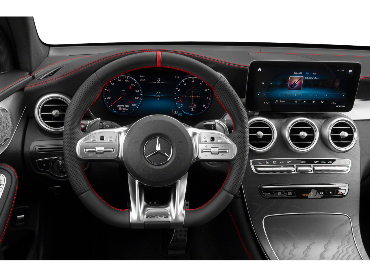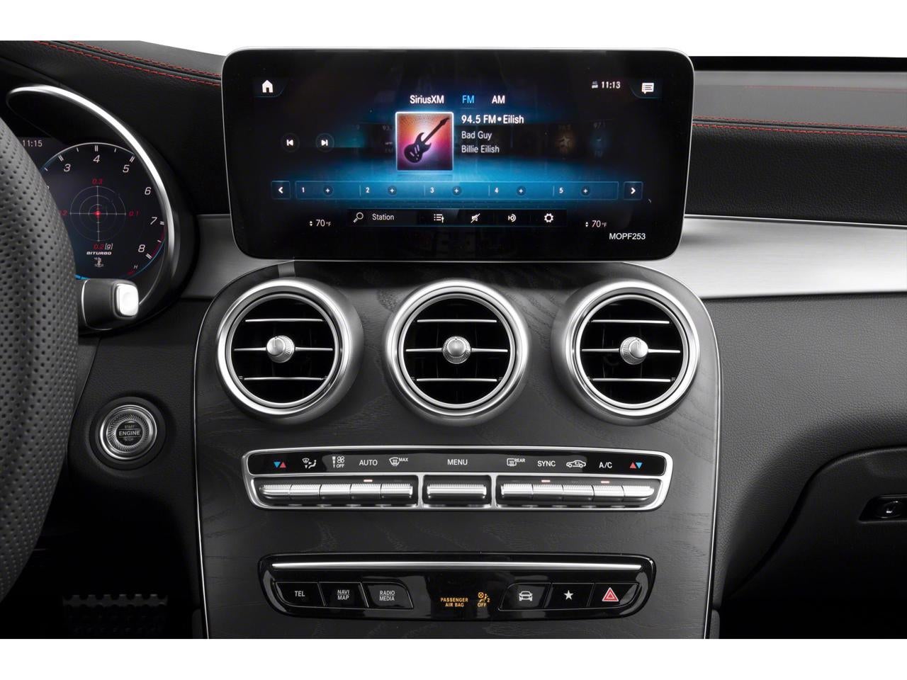Equipped with 10.25 Center Media Display, 3.69 Axle Ratio, 4-Wheel Disc Brakes, 6 Speakers, ABS brakes, Adaptive suspension, Air Conditioning, Alloy wheels, AM/FM radio: SiriusXM, Android Auto®, Apple CarPlay®, Apple CarPlay®/Android Auto®, Auto tilt-away steering wheel, Auto-dimming door mirrors, Auto-dimming Rear-View mirror, Auto-leveling suspension, Automatic temperature control, Brake assist, Bumpers: body-color, Child-Seat-Sensing Airbag, Delay-off headlights, Driver door bin, Driver vanity mirror, Dual front impact airbags, Dual front side impact airbags, Electronic Stability Control, Emergency communication system: eCall Emergency System, Exterior Parking Camera Rear, Four wheel independent suspension, Front anti-roll bar, Front Bucket Seats, Front Center Armrest, Front dual zone A/C, Front reading lights, Fully automatic headlights, Garage door transmitter: Homelink, Genuine wood dashboard insert, Heated door mirrors, Heated front seats, Illuminated entry, Knee airbag, Leather steering wheel, Low tire pressure warning, MB-Tex/DINAMICA Upholstery, MBUX Voice Control, Memory seat, Occupant sensing airbag, Outside temperature display, Overhead airbag, Overhead console, Panic alarm, Passenger door bin, Passenger Seat Memory w/Adjustable Thigh Support, Passenger vanity mirror, Power adjustable front head restraints, Power door mirrors, Power driver seat, Power Driver Seat & Steering Column w/Memory, Power Heated Front Seats, Power Liftgate, Power passenger seat, Power steering, Power windows, Radio data system, Radio: MBUX Multimedia System, Rain sensing wipers, Rear anti-roll bar, Rear fog lights, Rear reading lights, Rear seat center armrest, Rear window defroster, Rear window wiper, Remote keyless entry, Roof rack: rails only, Security system, SiriusXM Satellite Radio w/Free Trial Term, Smartphone Integration, Speed control, Speed-sensing steering, Split folding rear seat, Spoiler, Sport steering wheel, Steering wheel memory, Steering wheel mounted audio controls, Tachometer, Telescoping steering wheel, Tilt steering wheel, Traction control, Trip computer, Turn signal indicator mirrors, Variably intermittent wipers, Weather band radio, and Wheels: 20 AMG® Y 5-Spoke.