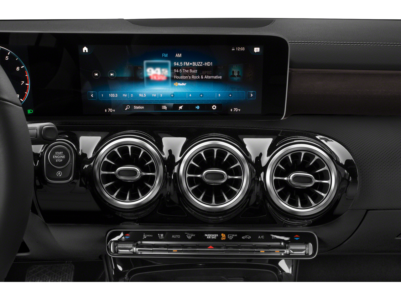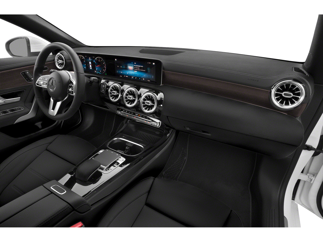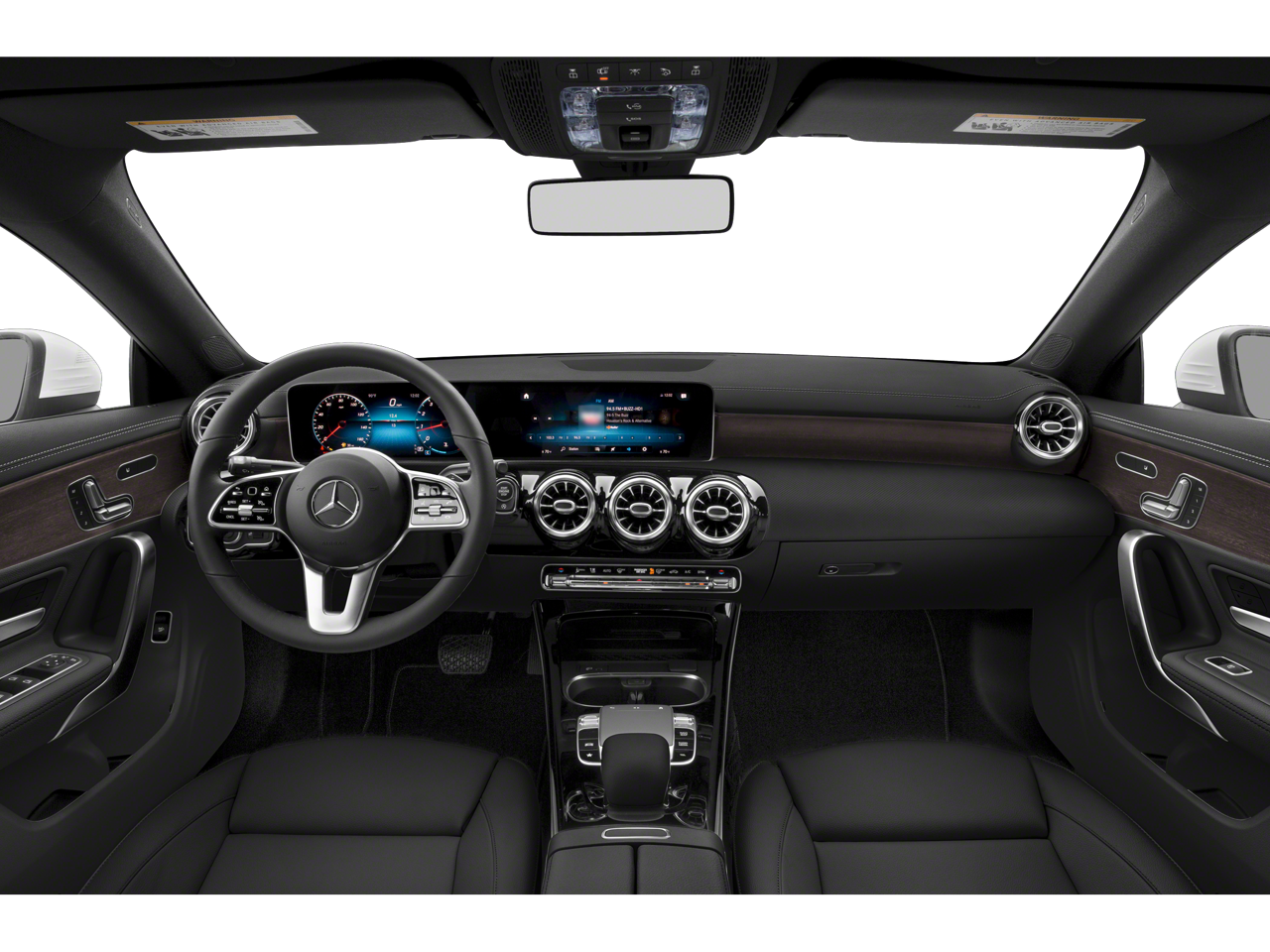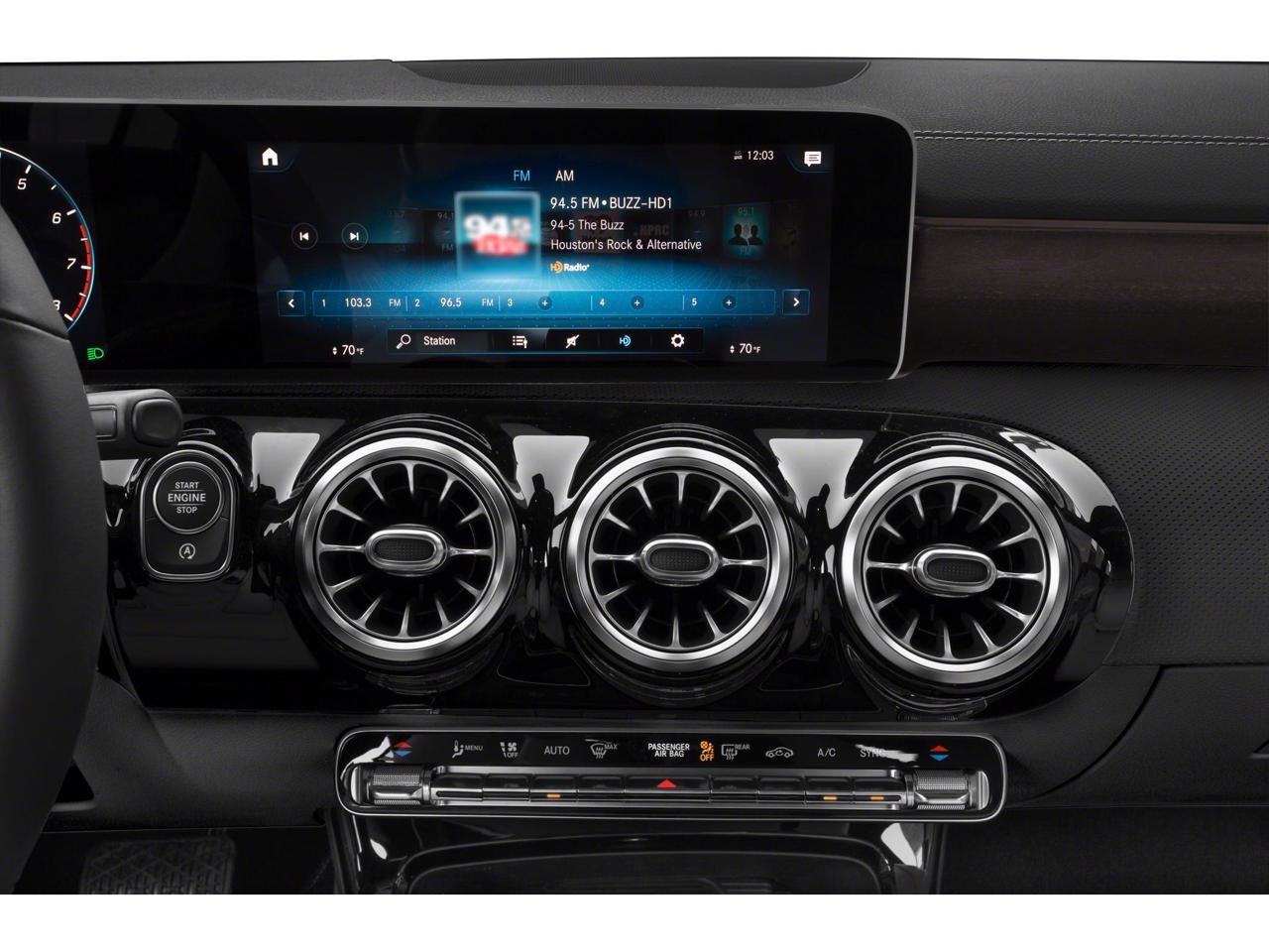 Equipped with 4-Wheel Disc Brakes, 8 Speakers, ABS brakes, Air Conditioning, Alloy wheels, AM/FM radio, Android Auto®, Apple CarPlay®, Apple CarPlay®/Android Auto®, Automatic temperature control, Brake assist, Bumpers: body-color, Child-Seat-Sensing Airbag, Delay-off headlights, Driver door bin, Driver vanity mirror, Dual front impact airbags, Dual front side impact airbags, Electronic Stability Control, Emergency communication system: eCall Emergency System, Exterior Parking Camera Rear, Four wheel independent suspension, Front anti-roll bar, Front Bucket Seats, Front Center Armrest, Front dual zone A/C, Front reading lights, Fully automatic headlights, HD Radio, Heated door mirrors, Illuminated entry, Knee airbag, Low tire pressure warning, MB-Tex Leatherette Seat Trim, Memory seat, Occupant sensing airbag, Outside temperature display, Overhead airbag, Overhead console, Panic alarm, Passenger door bin, Passenger vanity mirror, Power door mirrors, Power driver seat, Power moonroof, Power passenger seat, Power steering, Power windows, Radio data system, Radio: MBUX Multimedia System, Rain sensing wipers, Rear anti-roll bar, Rear fog lights, Rear reading lights, Rear seat center armrest, Rear window defroster, Remote keyless entry, Security system, Smartphone Integration, Speed control, Speed-sensing steering, Split folding rear seat, Steering wheel mounted audio controls, Tachometer, Telescoping steering wheel, Tilt steering wheel, Traction control, Trip computer, Turn signal indicator mirrors, Variably intermittent wipers, and Wheels: 18 Multi-Spoke.