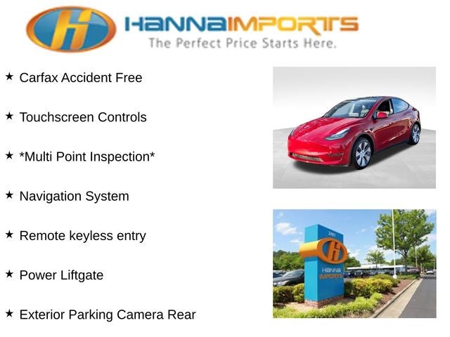Why shop with Hanna Imports? We specialize in hand-selecting top-quality used cars, trucks, and SUVs for drivers across Raleigh, Durham, Cary, Chapel Hill, and the greater Triangle area of North Carolina. Our massive selection of 1,000+ vehicles on our Raleigh lot is carefully curated to include the most sought-after models, all priced below market value. We believe in transparency and efficiency—our vehicles are aggressively priced from the start, which means no haggling, no hassle, and no wasted time. The price you see is our absolute best price. Whether you're coming from Wake Forest, Apex, Garner, or anywhere in central NC, we’re committed to making your car-buying experience smooth, affordable, and enjoyable. Come see why Hanna Imports is one of the most trusted used car dealerships in North Carolina! Used Tesla Model Y in Raleigh. Used Tesla Model Y in North Carolina, Model Y Long Range, AWD, Exterior Parking Camera Rear, Navigation System, Power Liftgate, Remote keyless entry, 15 Speakers, 4-Wheel Disc Brakes, 5 Seat Interior, 9.0 Axle Ratio, ABS brakes, Air Conditioning, Alloy wheels, Auto High-beam Headlights, Auto tilt-away steering wheel, Auto-dimming door mirrors, Auto-dimming Rear-View mirror, Automatic temperature control, Brake assist, Bumpers: body-color, Compass, Delay-off headlights, Driver door bin, Driver vanity mirror, Dual front impact airbags, Dual front side impact airbags, Electronic Stability Control, Four wheel independent suspension, Front anti-roll bar, Front Bucket Seats, Front Center Armrest, Front dual zone A/C, Front fog lights, Front reading lights, Fully automatic headlights, Genuine wood dashboard insert, Heated door mirrors, Heated front seats, Heated rear seats, Illuminated entry, Knee airbag, Low tire pressure warning, Memory seat, Occupant sensing airbag, Outside temperature display, Overhead airbag, Passenger door bin, Passenger vanity mirror, Power door mirrors, Power driver seat, Power passenger seat, Power steering, Power windows, Premium Audio System, Premium Seat Trim, Radio data system, Rain sensing wipers, Rear reading lights, Rear seat center armrest, Rear window defroster, Security system, Speed control, Speed-sensing steering, Split folding rear seat, Steering wheel memory, Steering wheel mounted A/C controls, Steering wheel mounted audio controls, Telescoping steering wheel, Tilt steering wheel, Traction control, Trip computer, Variably intermittent wipers, and Wheels: 19 x 9.5 Gemini.