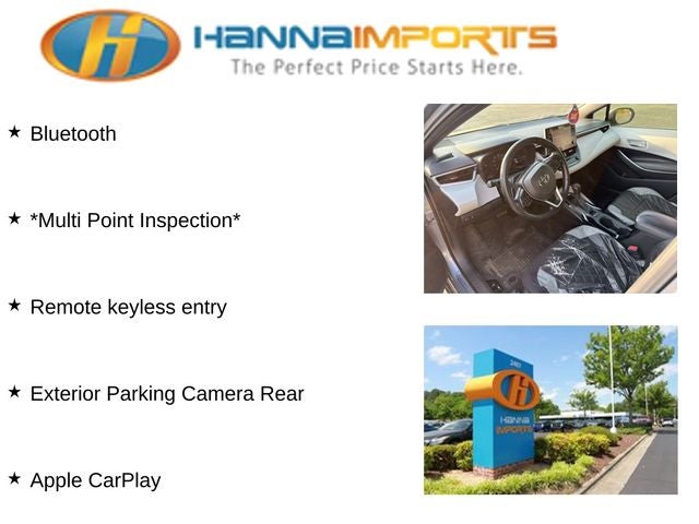 Why shop with Hanna Imports? We specialize in hand-selecting top-quality used cars, trucks, and SUVs for drivers across Raleigh, Durham, Cary, Chapel Hill, and the greater Triangle area of North Carolina. Our massive selection of 1,000+ vehicles on our Raleigh lot is carefully curated to include the most sought-after models, all priced below market value. We believe in transparency and efficiency—our vehicles are aggressively priced from the start, which means no haggling, no hassle, and no wasted time. The price you see is our absolute best price. Whether you're coming from Wake Forest, Apex, Garner, or anywhere in central NC, we’re committed to making your car-buying experience smooth, affordable, and enjoyable. Come see why Hanna Imports is one of the most trusted used car dealerships in North Carolina! Used Toyota Corolla in Raleigh. Used Toyota Corolla in North Carolina, Corolla SE, Apple CarPlay, Exterior Parking Camera Rear, Remote keyless entry, 18 Machined Alloy Wheels, 4-Wheel Disc Brakes, 6 Speakers, ABS brakes, Air Conditioning, Alloy wheels, AM/FM radio: SiriusXM, Auto High-beam Headlights, Automatic temperature control, Brake assist, Bumpers: body-color, Delay-off headlights, Driver door bin, Driver vanity mirror, Dual front impact airbags, Dual front side impact airbags, Electronic Stability Control, Emergency communication system: Safety Connect with 3-year trial, Four wheel independent suspension, Front anti-roll bar, Front Bucket Seats, Front Center Armrest, Front reading lights, Front Sport Seats, Fully automatic headlights, Heated door mirrors, Illuminated entry, Knee airbag, Leather Shift Knob, Low tire pressure warning, Occupant sensing airbag, Outside temperature display, Overhead airbag, Panic alarm, Passenger door bin, Passenger vanity mirror, Power door mirrors, Power steering, Power windows, Premium Fabric Seat Trim, Radio data system, Radio: Audio AM/FM w/Navigation, Rear anti-roll bar, Rear seat center armrest, Rear window defroster, Security system, Speed control, Split folding rear seat, Spoiler, Steering wheel mounted audio controls, Tachometer, Telescoping steering wheel, Tilt steering wheel, Traction control, Trip computer, Turn signal indicator mirrors, and Variably intermittent wipers.