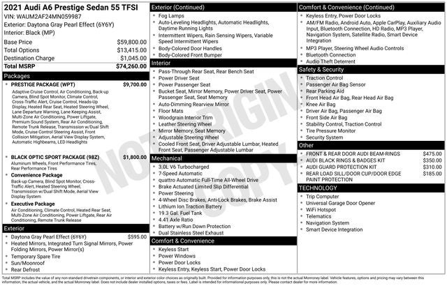 2021 Audi A6 3.0T Prestige quattro Daytona Gray Pearl Odometer is 2965 miles below market average! 22/29 City/Highway MPG