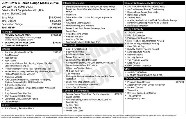 2021 BMW 4 Series M440i xDrive Black Sapphire Metallic 22/31 City/Highway MPG