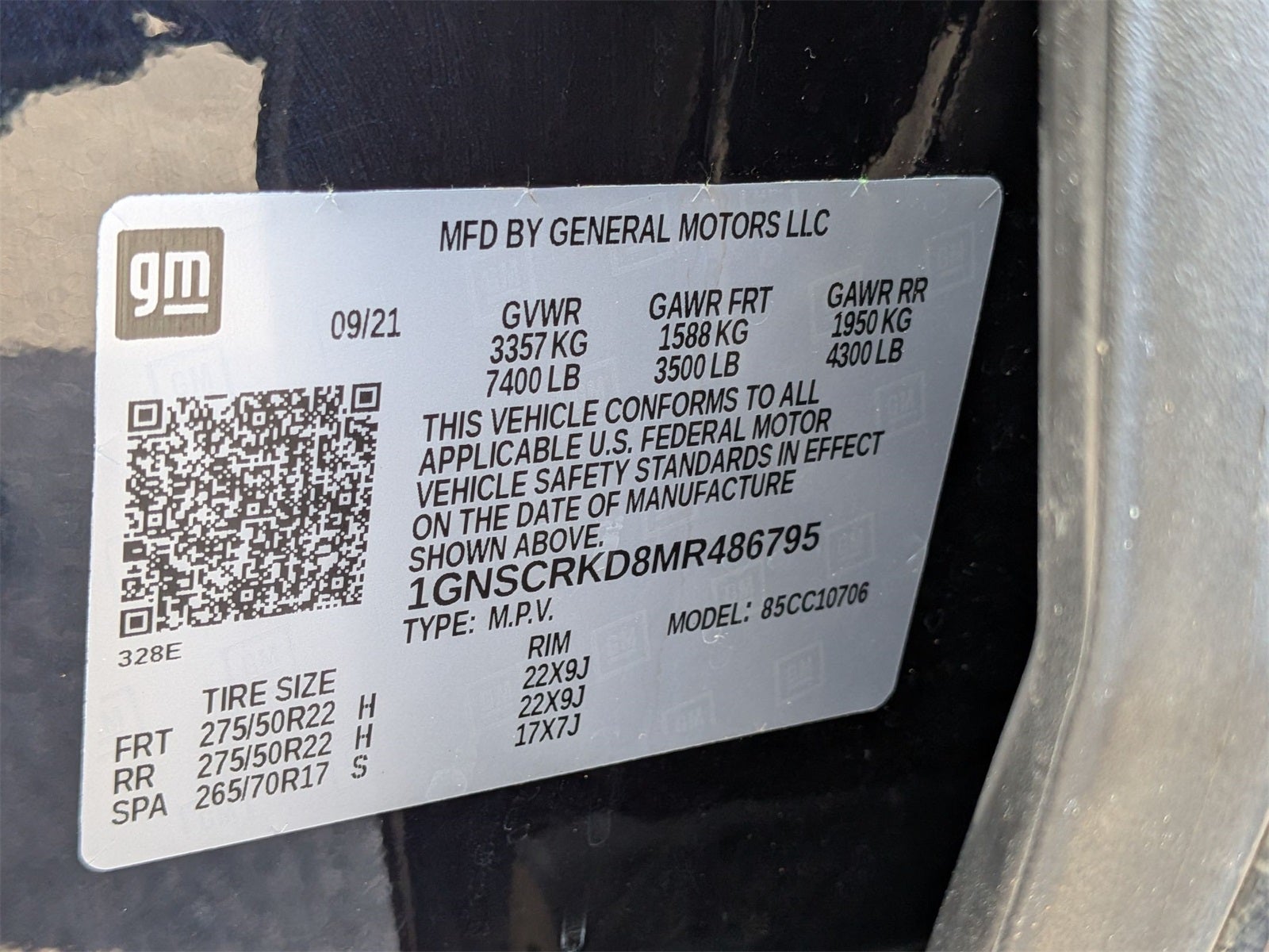 - Tires, 275/50R22SL all-season, blackwall