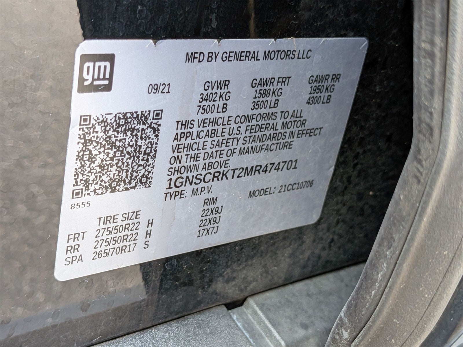 - Tires, 275/50R22SL all-season, blackwall