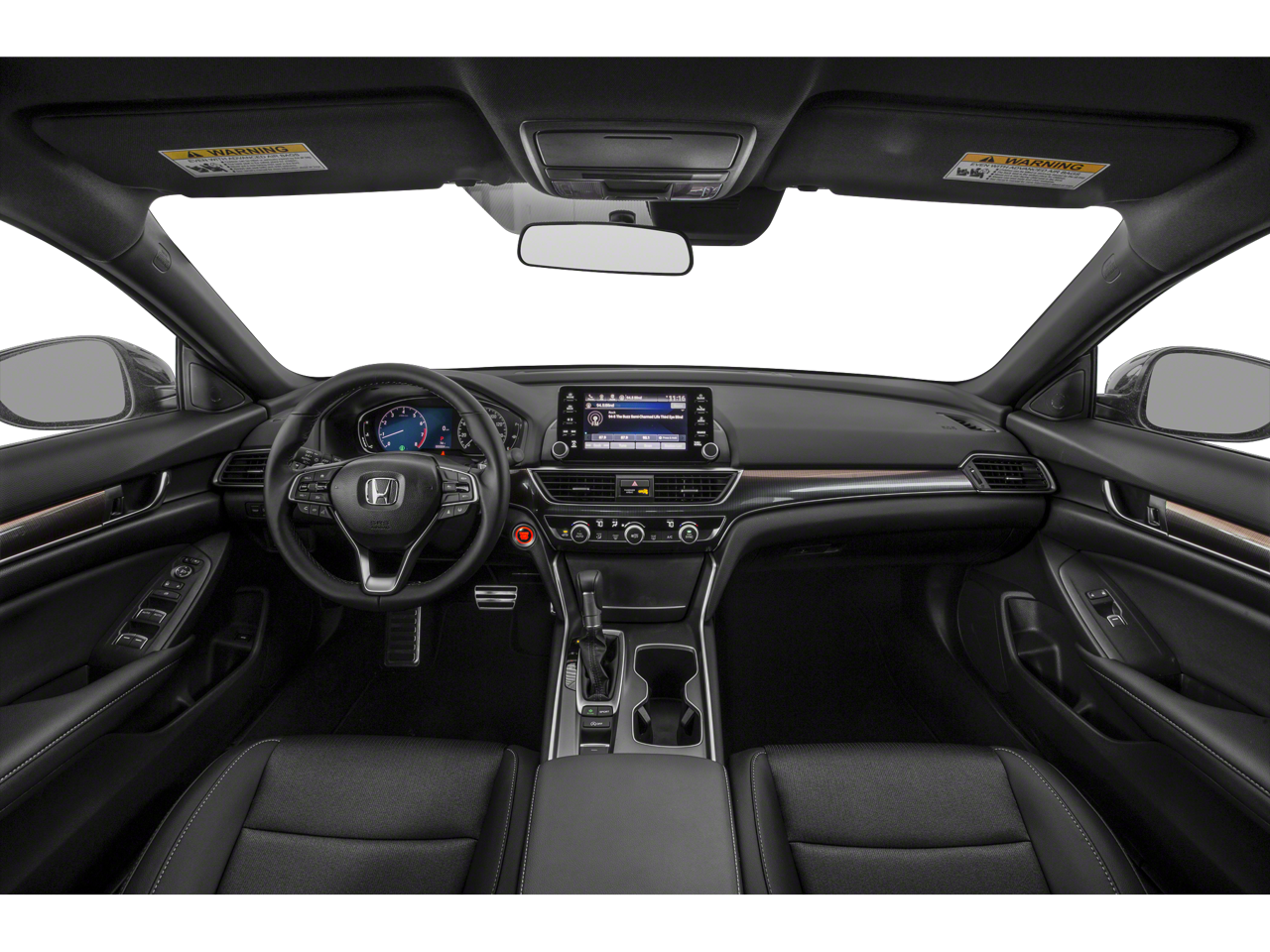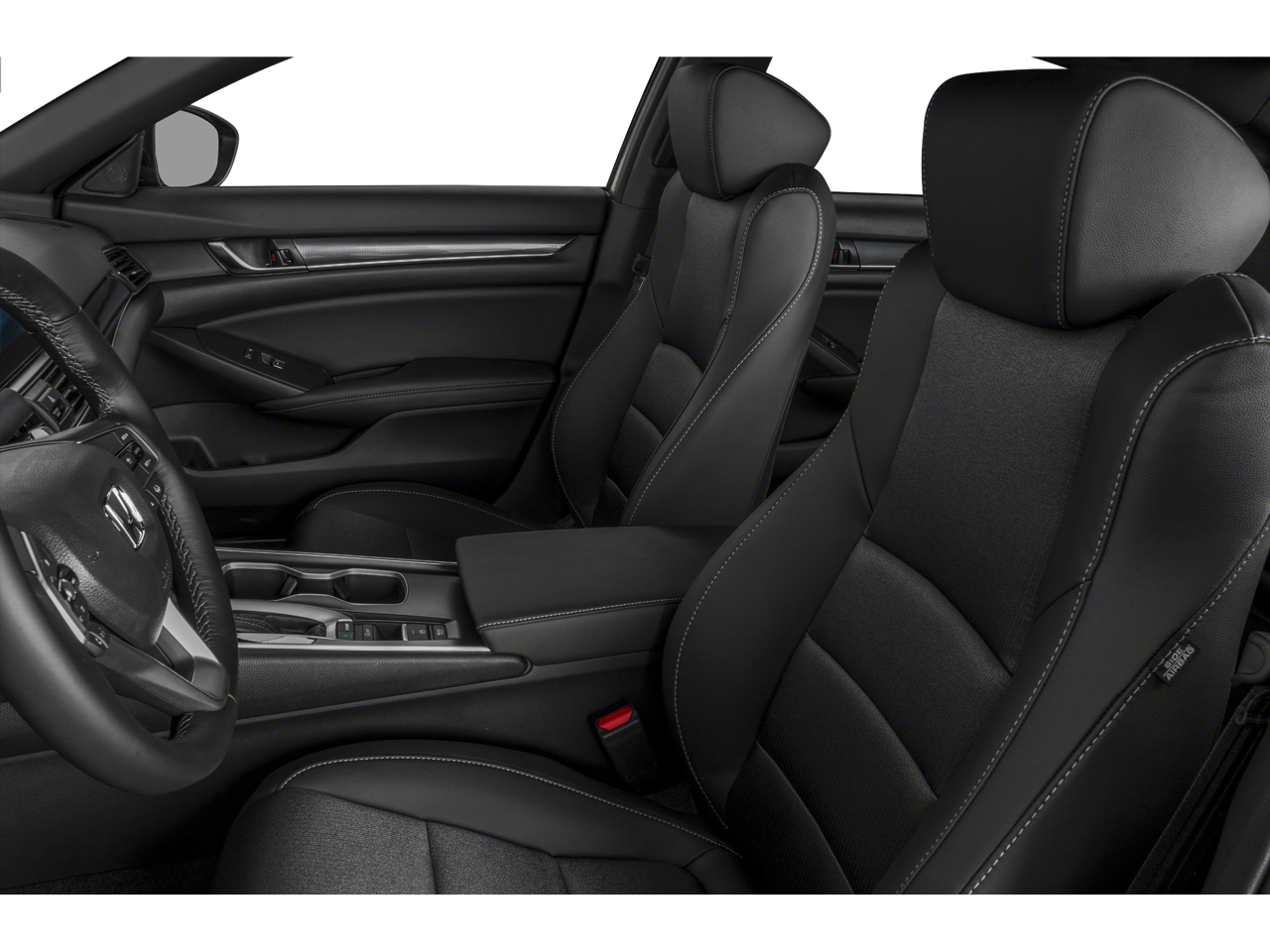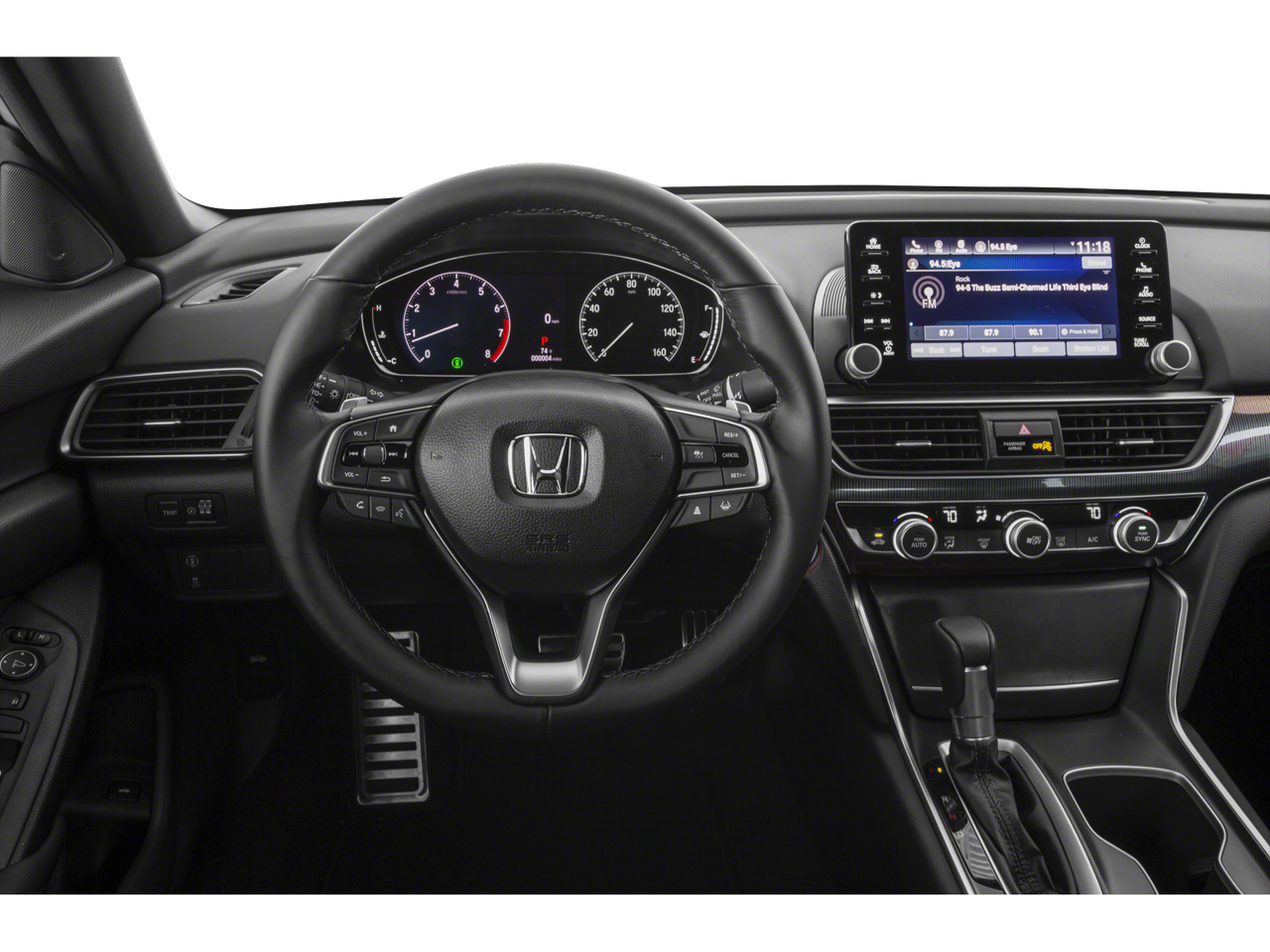 Equipped with Black Cloth, 4-Wheel Disc Brakes, 8 Speakers, ABS brakes, Adaptive Cruise Control: Adaptive Cruise Control (ACC) with Low-Speed Follow, Air Conditioning, Alloy wheels, AM/FM radio, Apple CarPlay/Android Auto, Auto High-beam Headlights, Automatic temperature control, Brake assist, Bumpers: body-color, Cloth Seat Trim, Delay-off headlights, Driver door bin, Driver vanity mirror, Dual front impact airbags, Dual front side impact airbags, Electronic Stability Control, Emergency communication system: HondaLink, Exterior Parking Camera Rear, Forward collision: Collision Mitigation Braking System (CMBS) + FCW mitigation, Four wheel independent suspension, Front anti-roll bar, Front Bucket Seats, Front Center Armrest, Front dual zone A/C, Front fog lights, Front reading lights, Fully automatic headlights, Illuminated entry, Knee airbag, Lane Departure Warning System, Leather Shift Knob, Leather steering wheel, Low tire pressure warning, Occupant sensing airbag, Outside temperature display, Overhead airbag, Overhead console, Panic alarm, Passenger door bin, Passenger vanity mirror, Power door mirrors, Power driver seat, Power steering, Power windows, Radio data system, Radio: 180-Watt AM/FM Audio System, Rear anti-roll bar, Rear seat center armrest, Rear window defroster, Remote keyless entry, Security system, Speed control, Speed-sensing steering, Speed-Sensitive Wipers, Split folding rear seat, Spoiler, Steering wheel mounted audio controls, Tachometer, Telescoping steering wheel, Tilt steering wheel, Traction control, Trip computer, Variably intermittent wipers, and Wheels: 19 Machine-Finished Alloy w/Black Inserts.
