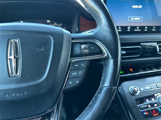 Equipped with Cargo Utility Package (110V/150W AC Power Outlet, Cargo Compartment w/Reversible Mat, Interior Cargo Cover, Molded Plastic Storage Bins, and Rear Cargo Management System), Class II Trailer Tow Package, Equipment Group 202A (Phone As A Key), Lincoln Co-Pilot360 Plus Package (360 Degree Camera, Adaptive Cruise Control, Distance Alert & Distance Indication, Enhanced Active Park Assist, Evasive Steering Assist, and Front Sensing), Monochromatic Package (20 Wheels, Black Lower Grille w/Painted Black Accent Trim, Body-Color Painted Nautilus Badging, Unique Body-Color Mesh Upper Grille, and Wheels: 20 Black Aluminum), Ultimate Package (Full LED Multi-Projector Headlamps, LED Fog Lamps, Radio: Revel AM/FM/HD Ultima System w/19-Speakers, SYNC 4 w/Enhanced Voice Recognition, and Wheels: 21 Premium Painted Bright Mach Aluminum), Navigation System, 13 Speakers, 3.80 Axle Ratio, 4-Wheel Disc Brakes, ABS brakes, Air Conditioning, Alloy wheels, AM/FM radio: SiriusXM with 360L, Auto High-beam Headlights, Auto tilt-away steering wheel, Auto-dimming door mirrors, Auto-dimming Rear-View mirror, Automatic temperature control, Brake assist, Bumpers: body-color, Compass, Delay-off headlights, Driver door bin, Driver vanity mirror, Dual front impact airbags, Dual front side impact airbags, Electronic Stability Control, Emergency communication system: 911 Assist, Four wheel independent suspension, Front anti-roll bar, Front Bucket Seats, Front Center Armrest w/Storage, Front dual zone A/C, Front reading lights, Fully automatic headlights, Garage door transmitter: HomeLink, Heated door mirrors, Heated front seats, Heated rear seats, Heated steering wheel, Illuminated entry, Knee airbag, Leather steering wheel, Low tire pressure warning, Memory seat, Occupant sensing airbag, Outside temperature display, Overhead airbag, Overhead console, Panic alarm, Passenger door bin, Passenger vanity mirror, Power door mirrors, Power driver seat, Power Liftgate, Power moonroof: Panoramic Vista Roof, Power passenger seat, Power steering, Power windows, Prem Lthr-Trimmed Heated/Ventilated Captain Seats, Radio data system, Radio: Revel AM/FM/HD Audio System, Rain sensing wipers, Rear anti-roll bar, Rear reading lights, Rear seat center armrest, Rear window defroster, Rear window wiper, Remote keyless entry, Satin Roof Rack Side Rails w/o Crossbars, Security system, Speed control, Speed-sensing steering, Speed-Sensitive Wipers, Split folding rear seat, Spoiler, Steering wheel memory, Steering wheel mounted A/C controls, Steering wheel mounted audio controls, Tachometer, Telescoping steering wheel, Tilt steering wheel, Traction control