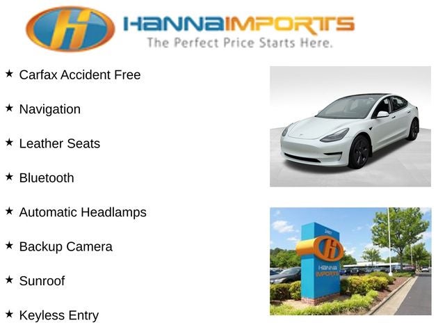 Why shop with Hanna Imports? We specialize in hand-selecting top-quality used cars, trucks, and SUVs for drivers across Raleigh, Durham, Cary, Chapel Hill, and the greater Triangle area of North Carolina. Our massive selection of 1,000+ vehicles on our Raleigh lot is carefully curated to include the most sought-after models, all priced below market value. We believe in transparency and efficiency—our vehicles are aggressively priced from the start, which means no haggling, no hassle, and no wasted time. The price you see is our absolute best price. Whether you're coming from Wake Forest, Apex, Garner, or anywhere in central NC, we’re committed to making your car-buying experience smooth, affordable, and enjoyable. Come see why Hanna Imports is one of the most trusted used car dealerships in North Carolina! Used Tesla Model 3 in Raleigh. Used Tesla Model 3 in North Carolina, Model 3 Long Range, AWD, 15 Speakers, 4-Wheel Disc Brakes, ABS brakes, Air Conditioning, Alloy wheels, Auto High-beam Headlights, Auto-dimming door mirrors, Auto-dimming Rear-View mirror, Automatic temperature control, Brake assist, Bumpers: body-color, Compass, Delay-off headlights, Driver door bin, Driver vanity mirror, Dual front impact airbags, Dual front side impact airbags, Electronic Stability Control, Exterior Parking Camera Rear, Four wheel independent suspension, Front anti-roll bar, Front Bucket Seats, Front Center Armrest, Front dual zone A/C, Front fog lights, Front reading lights, Fully automatic headlights, Genuine wood dashboard insert, Heated door mirrors, Heated front seats, Heated rear seats, Heated steering wheel, Illuminated entry, Knee airbag, Lane Departure Warning System, Low tire pressure warning, Memory seat, Navigation System, Occupant sensing airbag, Outside temperature display, Overhead airbag, Passenger door bin, Passenger vanity mirror, Power door mirrors, Power driver seat, Power passenger seat, Power steering, Power windows, Premium Audio System, Premium Heated Front Bucket Seats, Premium Seat Trim, Radio data system, Rear reading lights, Rear seat center armrest, Rear window defroster, Security system, Speed control, Speed-sensing steering, Split folding rear seat, Steering wheel memory, Steering wheel mounted A/C controls, Steering wheel mounted audio controls, Telescoping steering wheel, Tilt steering wheel, Traction control, Trip computer, Variably intermittent wipers, and Wheels: 18 x 8.5 Aero.