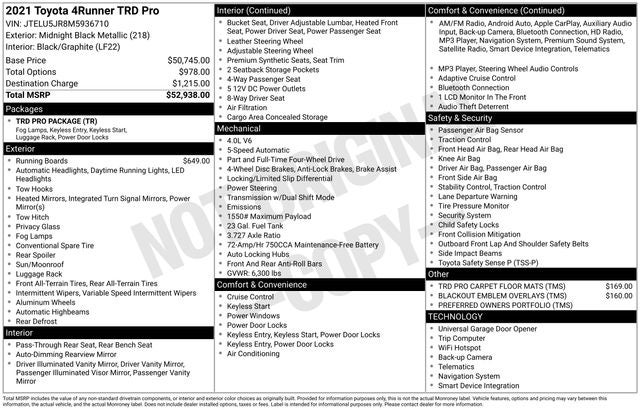2021 Toyota 4Runner TRD Pro Midnight Black Metallic Odometer is 31017 miles below market average!