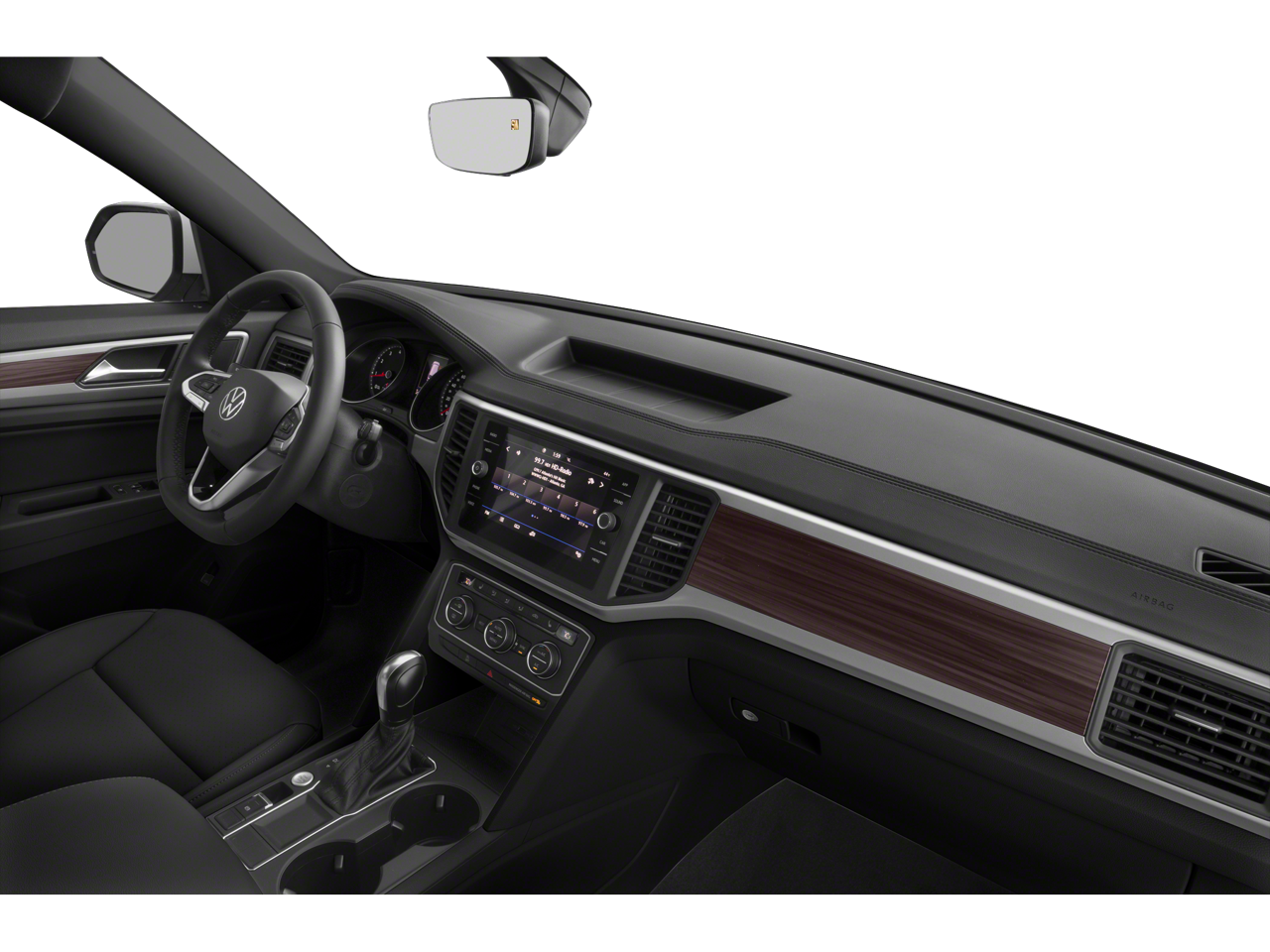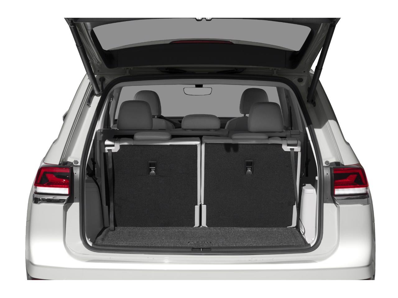 Equipped with 3.60 Axle Ratio, 3rd row seats: split-bench, 4-Wheel Disc Brakes, 6 Speakers, ABS brakes, Air Conditioning, Alloy wheels, Auto-dimming Rear-View mirror, Automatic temperature control, Brake assist, Bumpers: body-color, Compass, Delay-off headlights, Driver door bin, Driver vanity mirror, Dual front impact airbags, Dual front side impact airbags, Electronic Stability Control, Emergency communication system: VW Car-Net services (capabilities require enrollment or subscription), Exterior Parking Camera Rear, Forward collision: FCW w/Autonomous Emergency Braking mitigation, Four wheel independent suspension, Front anti-roll bar, Front Bucket Seats, Front Center Armrest, Front dual zone A/C, Front fog lights, Front reading lights, Fully automatic headlights, Heated Comfort Front Bucket Seats, Heated door mirrors, Heated front seats, Illuminated entry, Leather Shift Knob, Low tire pressure warning, Occupant sensing airbag, Outside temperature display, Overhead airbag, Overhead console, Panic alarm, Passenger door bin, Passenger vanity mirror, Perforated V-Tex Leatherette Seating Surfaces, Power door mirrors, Power driver seat, Power Liftgate, Power steering, Power windows, Radio data system, Rain sensing wipers, Rear air conditioning, Rear anti-roll bar, Rear reading lights, Rear seat center armrest, Rear window defroster, Rear window wiper, Remote keyless entry, Roof rack: rails only, Security system, Speed control, Speed-sensing steering, Split folding rear seat, Spoiler, Standard Suspension, Steering wheel mounted audio controls, Tachometer, Telescoping steering wheel, Tilt steering wheel, Traction control, Trip computer, Turn signal indicator mirrors, Variably intermittent wipers, and Wheels: 20 5-Spoke Silver Alloy.