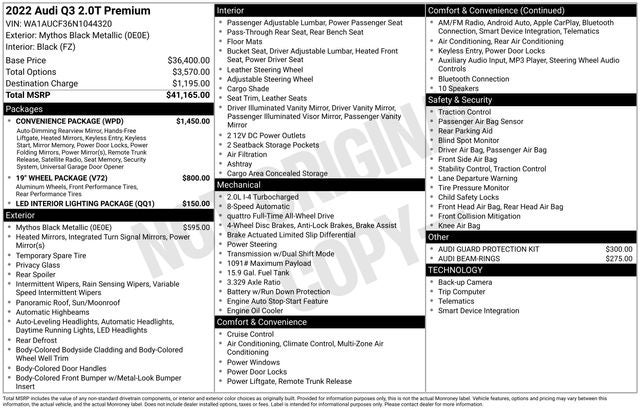 2022 Audi Q3 Premium quattro Black Metallic 23/30 City/Highway MPG