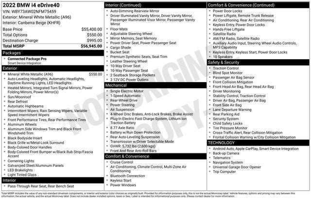 2022 BMW i4 eDrive40 Mineral White Metallic