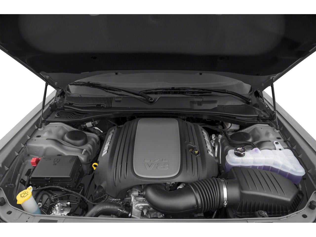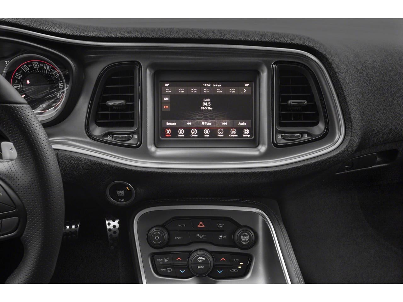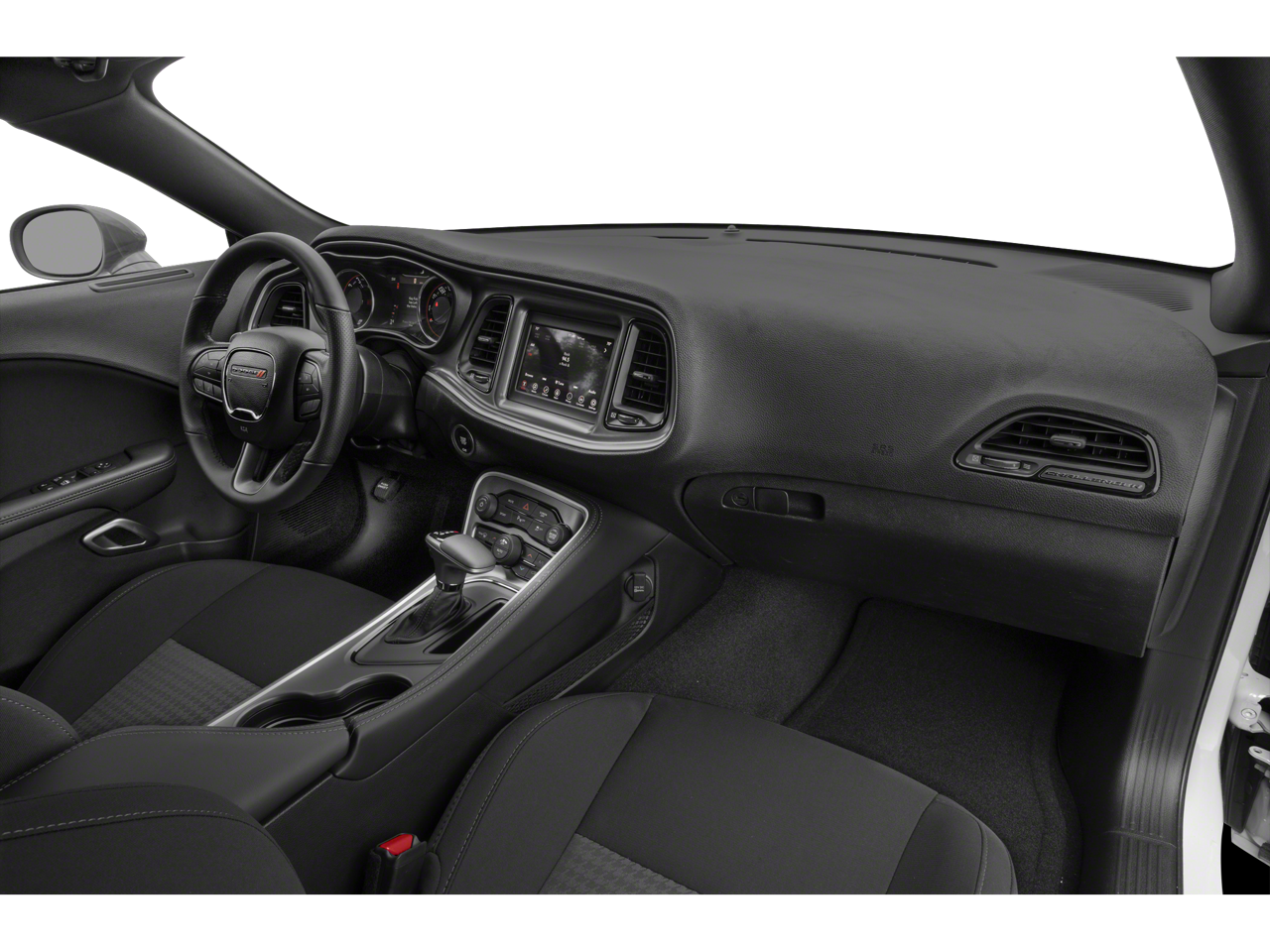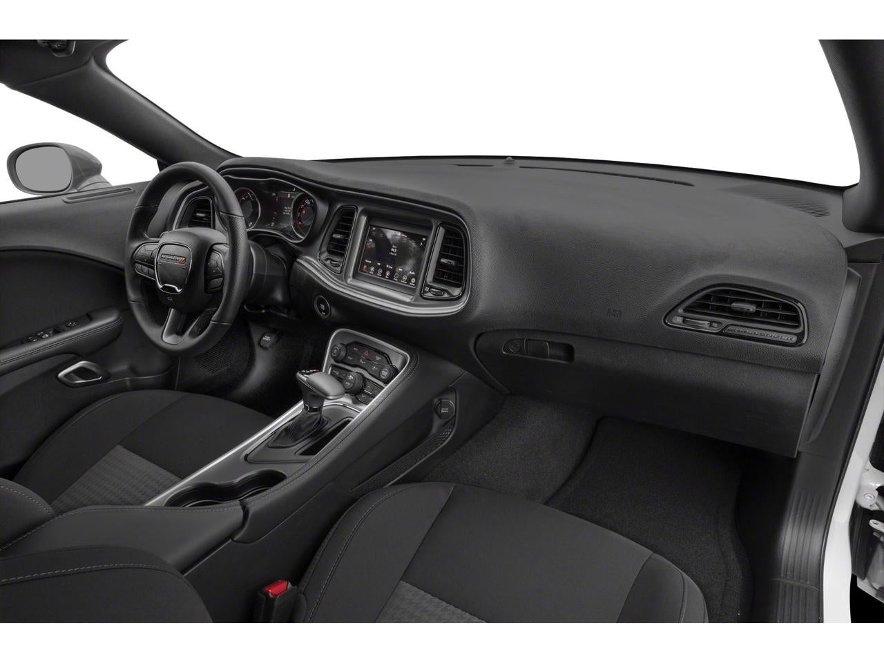Equipped with Blacktop Package (Black Fuel Filler Door, Blacktop R/T Badge, Gloss Black I/P Cluster Trim Rings, Rear Black Spoiler, Satin Black Dodge Tail Lamp Badge, and Wheels: 20 x 8.0 Black Noise Painted), Quick Order Package 22H, 4-Wheel Disc Brakes, 6 Speakers, ABS brakes, Air Conditioning, Alloy wheels, AM/FM radio, Anti-whiplash front head restraints, Apple CarPlay, Apple CarPlay/Android Auto, Auto-dimming Rear-View mirror, Automatic temperature control, Brake assist, Bumpers: body-color, Compass, Compass Gauge, Delay-off headlights, Driver door bin, Driver vanity mirror, Dual front impact airbags, Dual front side impact airbags, Electronic Stability Control, Four wheel independent suspension, Front anti-roll bar, Front Bucket Seats, Front Center Armrest, Front dual zone A/C, Front fog lights, Front reading lights, Fully automatic headlights, Garage door transmitter, Google Android Auto, GPS Antenna Input, Heated door mirrors, Houndstooth Cloth Performance Seats, Illuminated entry, Integrated Center Stack Radio, Integrated Voice Command w/Bluetooth®, Leather Shift Knob, Low tire pressure warning, Media Hub (2 USB, AUX), Outside temperature display, Overhead airbag, Overhead console, Panic alarm, ParkView Rear Back-Up Camera, Passenger door bin, Passenger vanity mirror, Power door mirrors, Power driver seat, Power steering, Power windows, Radio data system, Radio: Uconnect 4 w/7 Display, Rear anti-roll bar, Rear reading lights, Rear seat center armrest, Rear window defroster, Remote keyless entry, Security system, SiriusXM Satellite Radio, Speed control, Speed-sensing steering, Split folding rear seat, Spoiler, Sport steering wheel, Steering wheel mounted audio controls, Tachometer, Telescoping steering wheel, Tilt steering wheel, Traction control, Trip computer, USB Host Flip, Variably intermittent wipers, and Wheels: 20 x 8.0 Satin Carbon Aluminum.