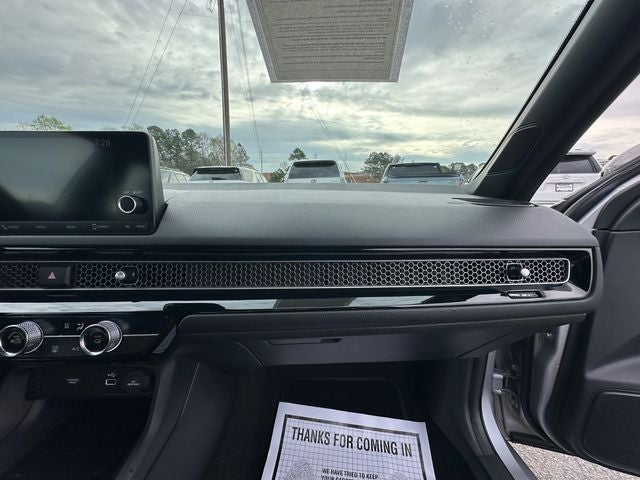 Equipped with Black Cloth, 4-Wheel Disc Brakes, 8 Speakers, ABS brakes, Adaptive Cruise Control: Adaptive Cruise Control (ACC) with Low-Speed Follow, Air Conditioning, Alloy wheels, AM/FM radio, Apple CarPlay/Android Auto, Auto High-beam Headlights, Automatic temperature control, Brake assist, Bumpers: body-color, Cloth Seat Trim, Delay-off headlights, Driver door bin, Driver vanity mirror, Dual front impact airbags, Dual front side impact airbags, Electronic Stability Control, Emergency communication system: HondaLink, Exterior Parking Camera Rear, Forward collision: Collision Mitigation Braking System (CMBS) + FCW mitigation, Four wheel independent suspension, Front anti-roll bar, Front Bucket Seats, Front Center Armrest, Front reading lights, Fully automatic headlights, Illuminated entry, Knee airbag, Leather Shift Knob, Leather steering wheel, Low tire pressure warning, Occupant sensing airbag, Outside temperature display, Overhead airbag, Panic alarm, Passenger door bin, Passenger vanity mirror, Power door mirrors, Power steering, Power windows, Radio data system, Radio: 180-Watt AM/FM Audio System, Rear anti-roll bar, Rear side impact airbag, Rear window defroster, Remote keyless entry, Security system, Speed control, Speed-sensing steering, Steering wheel mounted audio controls, Tachometer, Telescoping steering wheel, Tilt steering wheel, Traction control, Trip computer, and Wheels: 18 Gloss Black Alloy.