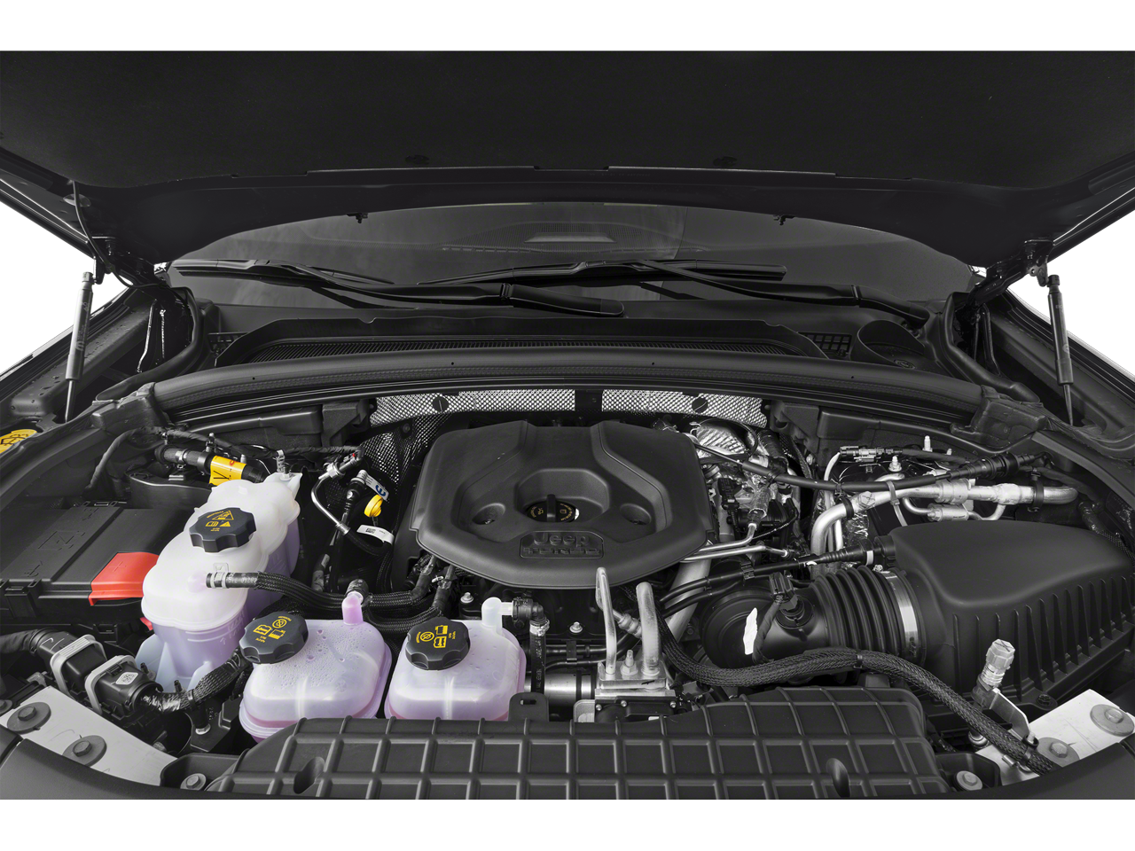 Equipped with Quick Order Package 27K, Two Tone Paint Group, 2.0L I4 DOHC, 4WD, Navigation System, 10 Speakers, 3.70 Rear Axle Ratio, 4-Wheel Disc Brakes, ABS brakes, Adaptive suspension, Air Conditioning, Alloy wheels, AM/FM radio: SiriusXM with 360L, Anti-whiplash front head restraints, Audio memory, Auto High-beam Headlights, Auto-dimming door mirrors, Auto-dimming Rear-View mirror, Auto-leveling suspension, Automatic temperature control, Brake assist, Bumpers: body-color, Capri Leather/Suede Seats, Compass, Delay-off headlights, Driver door bin, Driver vanity mirror, Dual front impact airbags, Dual front side impact airbags, Electronic Stability Control, Four wheel independent suspension, Front anti-roll bar, Front Bucket Seats, Front Center Armrest w/Storage, Front dual zone A/C, Front fog lights, Front reading lights, Fully automatic headlights, Garage door transmitter, Heated door mirrors, Heated front seats, Heated rear seats, Heated steering wheel, Heavy Duty Suspension, Illuminated entry, Knee airbag, Leather Shift Knob, Leather steering wheel, Low tire pressure warning, Memory seat, Occupant sensing airbag, Outside temperature display, Overhead airbag, Overhead console, Panic alarm, Passenger door bin, Passenger vanity mirror, Power door mirrors, Power driver seat, Power Liftgate, Power passenger seat, Power steering, Power windows, Radio data system, Radio: Uconnect 5 Nav w/10.1 Display, Radio: Uconnect 5 Nav w/8.4 Display, Rear anti-roll bar, Rear reading lights, Rear seat center armrest, Rear window defroster, Rear window wiper, Remote keyless entry, Roof rack: rails only, Security system, Speed control, Speed-Sensitive Wipers, Split folding rear seat, Spoiler, Steering wheel mounted audio controls, Tachometer, Telescoping steering wheel, Tilt steering wheel, Traction control, Trip computer, Turn signal indicator mirrors, Variably intermittent wipers, Ventilated front seats, Voltmeter, and Wheels: 18 x 8 Machined Face/Painted Aluminum.