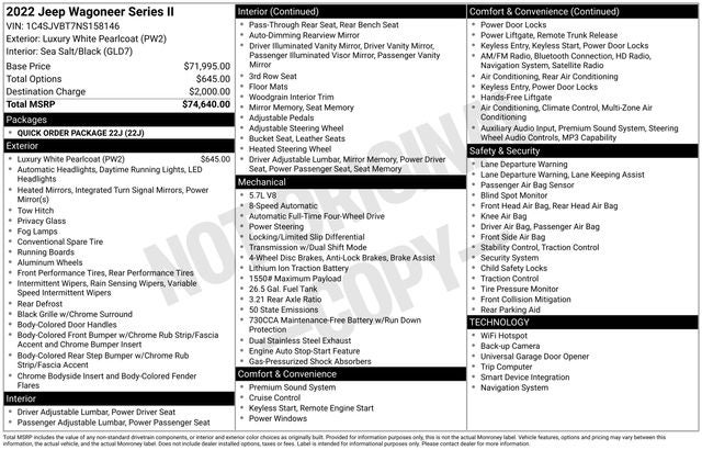 2022 Jeep Wagoneer Series II Luxury White Pearlcoat Odometer is 35488 miles below market average!