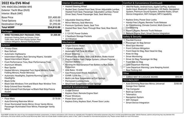 2022 Kia EV6 Wind Yacht Blue 116/94 City/Highway MPG