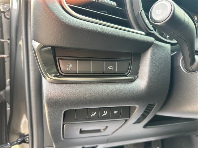 Equipped with 3.850 Axle Ratio, 4-Wheel Disc Brakes, 8 Speakers, ABS brakes, Air Conditioning, Alloy wheels, AM/FM radio, AppLink/Apple CarPlay and Android Auto, Auto High-beam Headlights, Automatic temperature control, Brake assist, Bumpers: body-color, Cargo Net, Compass, Delay-off headlights, Driver door bin, Driver vanity mirror, Dual front impact airbags, Dual front side impact airbags, Electronic Stability Control, Emergency communication system: Mazda Connected Services (Automatic 911 Dialing), Exterior Parking Camera Rear, Front anti-roll bar, Front Bucket Seats, Front Center Armrest, Front dual zone A/C, Front reading lights, Front wheel independent suspension, Fully automatic headlights, Heated Front Bucket Seats, Heated front seats, Illuminated entry, Illuminated Front Door Sill Trim Plates, Knee airbag, Leather Shift Knob, Leather steering wheel, Leatherette Seat Trim, Low tire pressure warning, Low Wall All-Weather Floor Mats, Machine Gray Metallic Paint, MAZDA CONNECT Infotainment System, Memory seat, Occupant sensing airbag, Outside temperature display, Overhead airbag, Overhead console, Panic alarm, Passenger door bin, Passenger vanity mirror, Power door mirrors, Power driver seat, Power moonroof, Power steering, Power windows, Radio data system, Radio: AM/FM/HD Audio System, Rain sensing wipers, Rear seat center armrest, Rear window defroster, Rear window wiper, Remote keyless entry, Roof rack: rails only, Speed control, Speed-sensing steering, Split folding rear seat, Spoiler, Steering wheel mounted audio controls, Tachometer, Telescoping steering wheel, Tilt steering wheel, Traction control, Trip computer, Turn signal indicator mirrors, Variably intermittent wipers, Wheel Locks, and Wheels: 18 x 7J Aluminum Alloy.