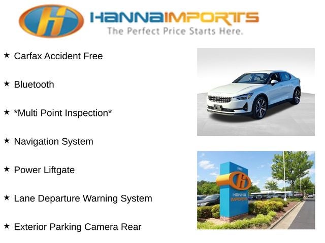 Why shop with Hanna Imports? We specialize in hand-selecting top-quality used cars, trucks, and SUVs for drivers across Raleigh, Durham, Cary, Chapel Hill, and the greater Triangle area of North Carolina. Our massive selection of 1,000+ vehicles on our Raleigh lot is carefully curated to include the most sought-after models, all priced below market value. We believe in transparency and efficiency—our vehicles are aggressively priced from the start, which means no haggling, no hassle, and no wasted time. The price you see is our absolute best price. Whether you're coming from Wake Forest, Apex, Garner, or anywhere in central NC, we’re committed to making your car-buying experience smooth, affordable, and enjoyable. Come see why Hanna Imports is one of the most trusted used car dealerships in North Carolina! Used Polestar 2 in Raleigh. Used Polestar 2 in North Carolina, 2 Long Range Dual Motor, Exterior Parking Camera Rear, Lane Departure Warning System, Navigation System, Power Liftgate, 4-Wheel Disc Brakes, 8 Speakers, ABS brakes, Air Conditioning, Alloy wheels, Auto High-beam Headlights, Auto-dimming Rear-View mirror, Automatic temperature control, Brake assist, Bumpers: body-color, Compass, Delay-off headlights, Driver door bin, Driver vanity mirror, Dual front impact airbags, Dual front side impact airbags, Electronic Stability Control, Embossed Textile Seating Surfaces, Emergency communication system: Polestar Connect, Four wheel independent suspension, Front anti-roll bar, Front Bucket Seats, Front Center Armrest, Front dual zone A/C, Front reading lights, Fully automatic headlights, Garage door transmitter: Homelink, Heated door mirrors, Heated Front Seats, Heated front seats, Illuminated entry, Knee airbag, Low tire pressure warning, Memory seat, Occupant sensing airbag, Outside temperature display, Overhead airbag, Overhead console, Panic alarm, Passenger door bin, Passenger vanity mirror, Power door mirrors, Power driver seat, Power passenger seat, Power steering, Power windows, Radio data system, Radio: High Performance Audio, Rain sensing wipers, Rear anti-roll bar, Rear fog lights, Rear reading lights, Rear seat center armrest, Rear window defroster, Remote keyless entry, Security system, Speed control, Speed-sensing steering, Split folding rear seat, Steering wheel mounted audio controls, Telescoping steering wheel, Tilt steering wheel, Traction control, Trip computer, Turn signal indicator mirrors, Variably intermittent wipers, and Wheels: 19 5 V-Spoke Black Diamond Cut Alloy.