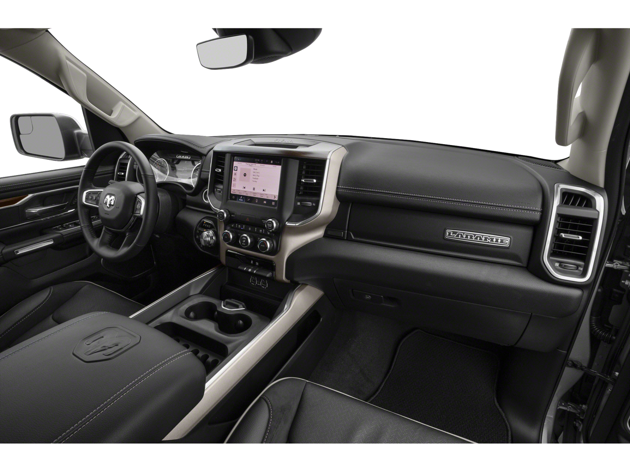 Equipped with Laramie Level I Equipment Group (2nd Row In Floor Storage Bins, Auto High Beam Headlamp Control, Blind Spot & Cross Path Detection, Foam Bottle Insert (Door Trim Panel), ParkSense Front/Rear Park Assist w/Stop, Rain Sensitive Windshield Wipers, and Remote Tailgate Release), Quick Order Package 27H Laramie, Sport Appearance Package (All Plant-Installed Decals, Auto-Dimming Exterior Driver Mirror, Black Interior Accents, Body Color Door Handles, Body Color Exterior Mirrors, Body Color Front Bumper, Body Color Premium Power Mirrors, Body Color Rear Bumper w/Step Pads, Convex Wide-Angle Mirror Insert, Exterior Mirrors Courtesy Lamps, Exterior Mirrors w/Heating Element, Exterior Mirrors w/Memory, Exterior Mirrors w/Supplemental Signals, Grille Surround 3 Body Color Tex 2 Black, Leather Trimmed Bucket Seats, Power-Folding Mirrors, Sport Decal, Sport Performance Hood, Twill Film Appliques, Wheels: 20 x 9 Premium Painted w/Inserts, #1 Seat Foam Cushion, 3 Rear Seat Head Restraints, 4 Way Front Headrests, Bucket Seats, Delete LED Lamp - Floor Console Bin, Driver Seat Memory, Front Seat Back Map Pockets, Full Length Upgraded Floor Console, Heated Front Seats, Heated Steering Wheel, Power 2-Way Driver Lumbar Adjust, Power 2-Way Passenger Lumbar Adjust, Power 8-Way Driver & Passenger Seats, Rear 60/40 Folding Seat, and Ventilated Front Seats), 10 Speakers, 4-Wheel Disc Brakes, 48V Belt Starter Generator, 4G LTE Wi-Fi Hot Spot, 8.4 Touchscreen Display, ABS brakes, Adjustable pedals, Air Conditioning, Alloy wheels, AM/FM radio, Anti-Spin Differential Rear Axle, Apple CarPlay, Apple CarPlay/Android Auto, Audio memory, Auto-dimming door mirrors, Auto-dimming Rear-View mirror, Automatic temperature control, Brake assist, Bumpers: chrome, Chrome Exterior Mirrors, Compass, Connectivity - US/Canada, Delay-off headlights, Driver door bin, Driver vanity mirror, Dual front impact airbags, Dual front side impact airbags, Electronic Stability Control, Exterior Parking Camera Rear, For Details, Visit DriveUconnect.com, Front anti-roll bar, Front Center Armrest w/Storage, Front dual zone A/C, Front fog lig