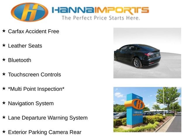 Why shop with Hanna Imports? We specialize in hand-selecting top-quality used cars, trucks, and SUVs for drivers across Raleigh, Durham, Cary, Chapel Hill, and the greater Triangle area of North Carolina. Our massive selection of 1,000+ vehicles on our Raleigh lot is carefully curated to include the most sought-after models, all priced below market value. We believe in transparency and efficiency—our vehicles are aggressively priced from the start, which means no haggling, no hassle, and no wasted time. The price you see is our absolute best price. Whether you're coming from Wake Forest, Apex, Garner, or anywhere in central NC, we’re committed to making your car-buying experience smooth, affordable, and enjoyable. Come see why Hanna Imports is one of the most trusted used car dealerships in North Carolina! Used Tesla Model 3 in Raleigh. Used Tesla Model 3 in North Carolina, Model 3 Long Range, AWD, Exterior Parking Camera Rear, Heated front seats, Heated rear seats, Lane Departure Warning System, Navigation System, 14 Speakers, 4-Wheel Disc Brakes, ABS brakes, Air Conditioning, Alloy wheels, Audio memory, Auto High-beam Headlights, Auto-dimming door mirrors, Auto-dimming Rear-View mirror, Automatic temperature control, Brake assist, Bumpers: body-color, Compass, Delay-off headlights, Driver door bin, Driver vanity mirror, Dual front impact airbags, Dual front side impact airbags, Electronic Stability Control, Four wheel independent suspension, Front anti-roll bar, Front Bucket Seats, Front Center Armrest, Front dual zone A/C, Front fog lights, Front reading lights, Fully automatic headlights, Genuine wood dashboard insert, Heated door mirrors, Heated steering wheel, HVAC memory, Illuminated entry, Knee airbag, Low tire pressure warning, Memory seat, Occupant sensing airbag, Outside temperature display, Overhead airbag, Passenger door bin, Passenger vanity mirror, Power door mirrors, Power driver seat, Power passenger seat, Power steering, Power windows, Premium Audio System, Premium Heated Front Bucket Seats, Premium Seat Trim, Radio data system, Rain sensing wipers, Rear reading lights, Rear seat center armrest, Rear window defroster, Security system, Speed control, Speed-sensing steering, Split folding rear seat, Steering wheel memory, Steering wheel mounted A/C controls, Steering wheel mounted audio controls, Telescoping steering wheel, Tilt steering wheel, Traction control, Trip computer, Variably intermittent wipers, and Wheels: 18 x 8.5 Aero.