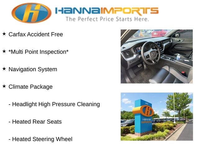 Why shop with Hanna Imports? We specialize in hand-selecting top-quality used cars, trucks, and SUVs for drivers across Raleigh, Durham, Cary, Chapel Hill, and the greater Triangle area of North Carolina. Our massive selection of 1,000+ vehicles on our Raleigh lot is carefully curated to include the most sought-after models, all priced below market value. We believe in transparency and efficiency—our vehicles are aggressively priced from the start, which means no haggling, no hassle, and no wasted time. The price you see is our absolute best price. Whether you're coming from Wake Forest, Apex, Garner, or anywhere in central NC, we’re committed to making your car-buying experience smooth, affordable, and enjoyable. Come see why Hanna Imports is one of the most trusted used car dealerships in North Carolina! Used Volvo XC60 Recharge Plug-In Hybrid in Raleigh. Used Volvo XC60 Recharge Plug-In Hybrid in North Carolina, Advanced Package (12V Outlet in Cargo Area, 360 Degree Surroundview Camera, Air Purifier, Graphical Head-Up Display, and Pilot Assist Driver Assistance System), Climate Package (Headlight High Pressure Cleaning, Heated Rear Seats, and Heated Steering Wheel), Protection Package Premier (Bumper Cover, Cargo Tray, License Plate Frame, Rubber Floor Mats, and Wheel Locks), XC60 Recharge Plug-In Hybrid T8 R-Design, 2.0L I4 Hybrid Turbocharged DOHC 16V LEV3-SULEV30, AWD, Exterior Parking Camera Rear, Heated front seats, Navigation System, Power moonroof, Power Operated Tailgate, 14 Speakers, 4-Wheel Disc Brakes, ABS brakes, Air Conditioning, Alloy wheels, Anti-whiplash front head restraints, Auto High-beam Headlights, Auto-dimming door mirrors, Auto-dimming Rear-View mirror, Automatic temperature control, Brake assist, Bumpers: body-color, Delay-off headlights, Driver door bin, Driver vanity mirror, Dual front impact airbags, Dual front side impact airbags, Electronic Stability Control, Emergency communication system: Volvo Cars App w/4 Year Subscription, Four wheel independent suspension, Front anti-roll bar, Front Bucket Seats, Front Center Armrest, Front dual zone A/C, Front Heated R-Design Sport Seats, Front reading lights, Fully automatic headlights, Garage door transmitter: HomeLink, harman/kardon® Speakers, Heated door mirrors, Illuminated entry, Knee airbag, Leather Shift Knob, Low tire pressure warning, Luggage Cover, Memory seat, Nappa Leather Fr & Leatherette Rr Upholstery, Occupant sensing airbag, Outside temperature display, Overhead airbag, Panic alarm, Passenger door bin, Passenger vanity mirror, Power door mirrors, Power driver seat, Power passenger seat, Power steering, Power windows, Radio data system, Radio: harman/kardon Premium Audio System, Rain sensing wipers, Rear anti-roll bar, Rear fog lights, Rear reading lights, Rear seat center armrest, Rear window defroster, Rear window wiper, Remote keyless entry, Security system, Speed control, Split folding rear seat, Spoiler, Sport steering wheel, Steering wheel mounted audio controls, Tachometer, Telescoping steering wheel, Tilt steering wheel, Traction control, Trip computer, Turn signal indicator mirrors, Variably intermittent wipers, Wheels: 19 5-Double Spoke Black Diamond Cut Alloy, and Wheels: 21 5-Doubl