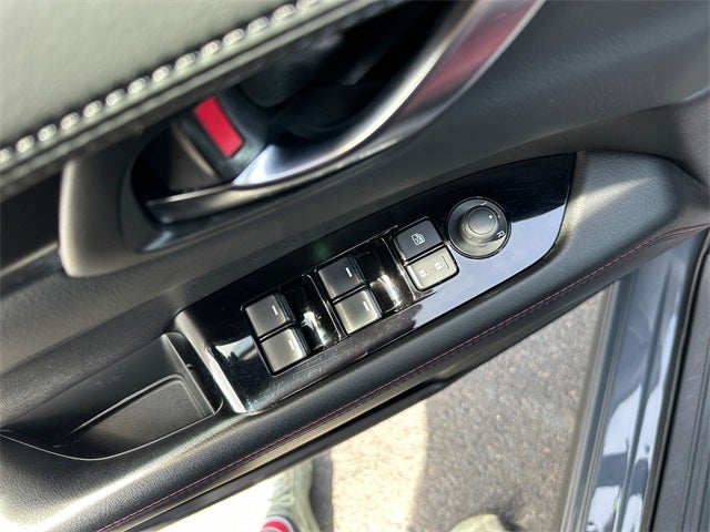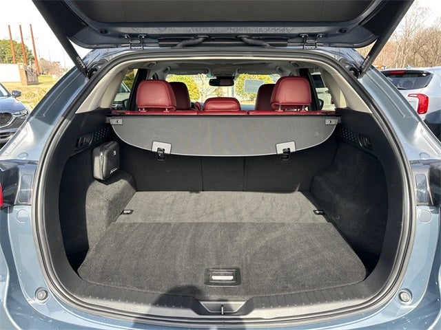 Equipped with 10 Speakers, 4-Wheel Disc Brakes, 4.624 Axle Ratio, ABS brakes, Air Conditioning, Alloy wheels, AM/FM radio, AppLink/Apple CarPlay and Android Auto, Auto High-beam Headlights, Auto-dimming Rear-View mirror, Automatic temperature control, Black Lug Nuts & Black Wheel Locks, Brake assist, Bumpers: body-color, Carbon Edition License Plate Frame, Delay-off headlights, Driver door bin, Driver vanity mirror, Dual front impact airbags, Dual front side impact airbags, E911 Automatic Emergency Notification, Electronic Stability Control, Emergency communication system: MAZDA CONNECT, Exterior Parking Camera Rear, First Aid Kit, Four wheel independent suspension, Front anti-roll bar, Front Bucket Seats, Front Center Armrest w/Storage, Front dual zone A/C, Front reading lights, Fully automatic headlights, Garage door transmitter: HomeLink, Heated Front Bucket Seats, Heated front seats, Illuminated entry, Infotainment System Voice Command, Leather Seat Trim, Leather Shift Knob, Low tire pressure warning, Memory seat, Multifunction Commander Control, Occupant sensing airbag, Outside temperature display, Overhead airbag, Overhead console, Pandora, Panic alarm, Passenger door bin, Passenger vanity mirror, Power door mirrors, Power driver seat, Power Liftgate, Power moonroof, Power passenger seat, Power steering, Power windows, Radio Broadcast Data System Program Information, Radio data system, Radio: AM/FM/HD Audio System, Rain sensing wipers, Rear anti-roll bar, Rear reading lights, Rear seat center armrest, Rear window defroster, Rear window wiper, Remote keyless entry, Retractable Cargo Cover, Roof Rack Side Rails, SMS Text Msg Audio Delivery & Reply, Speed control, Speed-sensing steering, Split folding rear seat, Spoiler, Steering wheel mounted audio controls, Tachometer, Telescoping steering wheel, Tilt steering wheel, Traction control, Trip computer, Turn signal indicator mirrors, Variably intermittent wipers, and Wheels: 19 x 7J Aluminum Alloy.