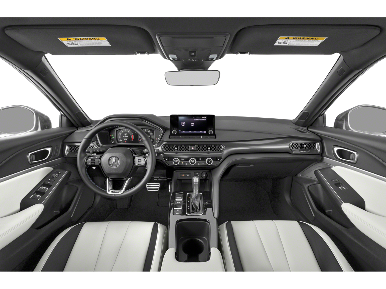 Equipped with 18 Alloy Wheels, 4-Wheel Disc Brakes, 8 Speakers, ABS brakes, Air Conditioning, Alloy wheels, AM/FM radio, Apple CarPlay/Android Auto, Auto High-beam Headlights, Auto-dimming Rear-View mirror, Automatic temperature control, Brake assist, Bumpers: body-color, Compass, Delay-off headlights, Driver door bin, Driver vanity mirror, Dual front impact airbags, Dual front side impact airbags, Electronic Stability Control, Four wheel independent suspension, Front anti-roll bar, Front Bucket Seats, Front Center Armrest, Front dual zone A/C, Front fog lights, Front reading lights, Fully automatic headlights, Heated door mirrors, Heated Front Bucket Seats, Heated front seats, Illuminated entry, Knee airbag, Lane departure: Lane Keeping Assist System (LKAS) active, Leather Shift Knob, Leatherette-Trimmed Seating Surfaces, Low tire pressure warning, Occupant sensing airbag, Outside temperature display, Overhead airbag, Overhead console, Panic alarm, Passenger door bin, Passenger vanity mirror, Power door mirrors, Power driver seat, Power moonroof, Power steering, Power windows, Radio data system, Radio: Acura Premium Audio System, Rear anti-roll bar, Rear seat center armrest, Rear side impact airbag, Rear window defroster, Remote keyless entry, Security system, Speed control, Speed-sensing steering, Speed-Sensitive Wipers, Split folding rear seat, Spoiler, Steering wheel mounted audio controls, Tachometer, Telescoping steering wheel, Tilt steering wheel, Traction control, Trip computer, and Variably intermittent wipers.