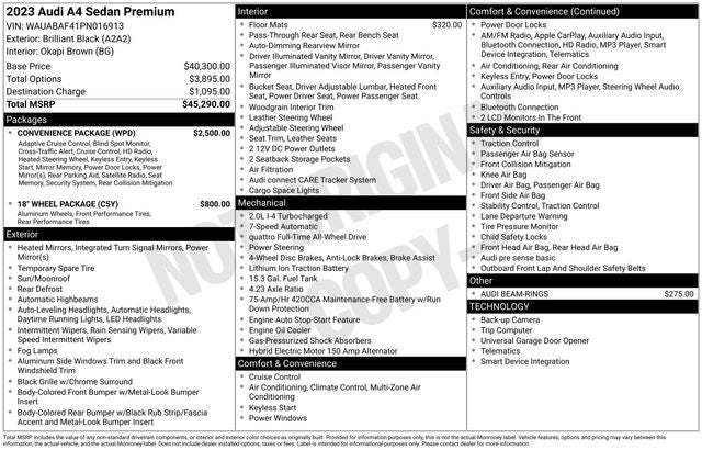 2023 Audi A4 40 Premium quattro Brilliant Black 24/33 City/Highway MPG