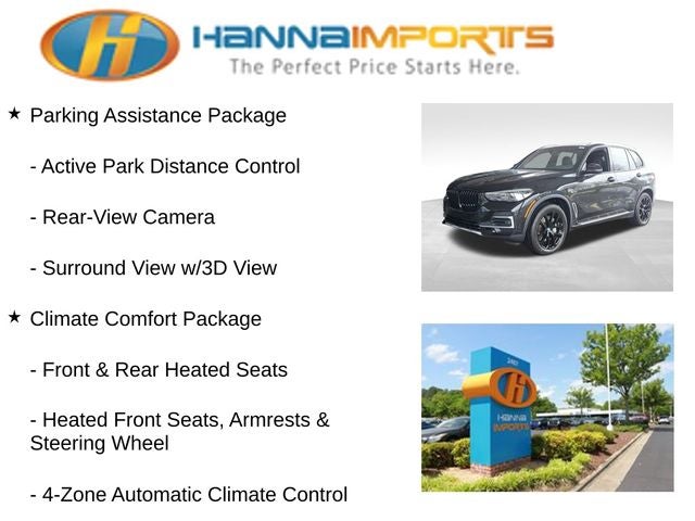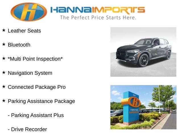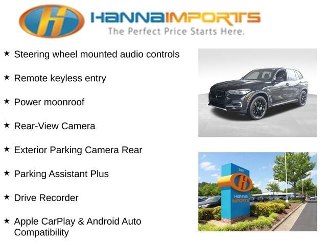 Why shop with Hanna Imports? We specialize in hand-selecting top-quality used cars, trucks, and SUVs for drivers across Raleigh, Durham, Cary, Chapel Hill, and the greater Triangle area of North Carolina. Our massive selection of 1,000+ vehicles on our Raleigh lot is carefully curated to include the most sought-after models, all priced below market value. We believe in transparency and efficiency—our vehicles are aggressively priced from the start, which means no haggling, no hassle, and no wasted time. The price you see is our absolute best price. Whether you're coming from Wake Forest, Apex, Garner, or anywhere in central NC, we’re committed to making your car-buying experience smooth, affordable, and enjoyable. Come see why Hanna Imports is one of the most trusted used car dealerships in North Carolina! Used BMW X5 in Raleigh. Used BMW X5 in North Carolina, Climate Comfort Package (4-Zone Automatic Climate Control, Front & Rear Heated Seats, and Heated Front Seats, Armrests & Steering Wheel), Connected Package Pro, Parking Assistance Package (Active Park Distance Control, Drive Recorder, Parking Assistant Plus, Rear-View Camera, and Surround View w/3D View), X5 xDrive45e, Black Black Sensafin, Apple CarPlay & Android Auto Compatibility, Exterior Parking Camera Rear, Navigation System, Power moonroof, Remote keyless entry, Steering wheel mounted audio controls, 10 Speakers, 3.636 Axle Ratio, 4-Wheel Disc Brakes, ABS brakes, Air Conditioning, Alloy wheels, Aluminum Running Boards, AM/FM radio: SiriusXM with 360L, AM/FM Stereo, Auto High-beam Headlights, Auto tilt-away steering wheel, Auto-dimming door mirrors, Auto-dimming Rear-View mirror, Auto-leveling suspension, Automatic temperature control, BMW Assist eCall, BMW TeleServices, Brake assist, Bumpers: body-color, Compass, Delay-off headlights, Driver door bin, Driver Lumbar Support Only (DISC), Driver vanity mirror, Dual front impact airbags, Dual front side impact airbags, Electronic Stability Control, Emergency communication system: BMW Assist eCall, Enhanced USB & Bluetooth® w/Smartphone Integration, Four wheel independent suspension, Front anti-roll bar, Front Bucket Seats, Front Center Armrest, Front dual zone A/C, Front reading lights, Fully automatic headlights, Garage door transmitter, Genuine wood console insert, Genuine wood dashboard insert, Genuine wood door panel insert, Head restraints memory, Heated door mirrors, Heated Front Seats, Heated front seats, Hi-Fi Sound System, Illuminated entry, Knee airbag, Leather Shift Knob, Leather steering wheel, Low tire pressure warning, Lumbar Support, Memory seat, Occupant sensing airbag, Outside temperature display, Overhead airbag, Panic alarm, Passenger door bin, Passenger vanity mirror, Power adjustable front head restraints, Power door mirrors, Power driver seat, Power Front Seats, Power passenger seat, Power steering, Power windows, Radio data system, Rain sensing wipers, Rear anti-roll bar, Rear reading lights, Rear seat center armrest, Rear window defroster, Rear window wiper, Security system, Sensafin Upholstery, SiriusXM Satellite Radio, Speed control, Speed-sensing steering, Speed-Sensitive Wipers, Split folding rear seat, Spoiler, Sport Seats, Sport steering wheel, Tachometer, Telescoping steering wheel, Tilt steering wheel, Traction control, Trip computer, Turn signal indicator mirrors, Variably intermit