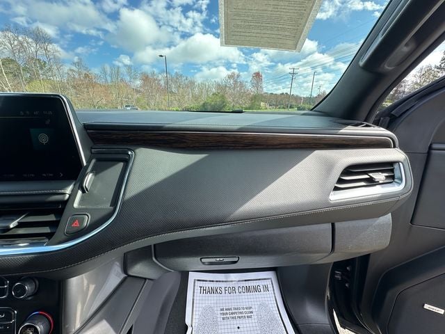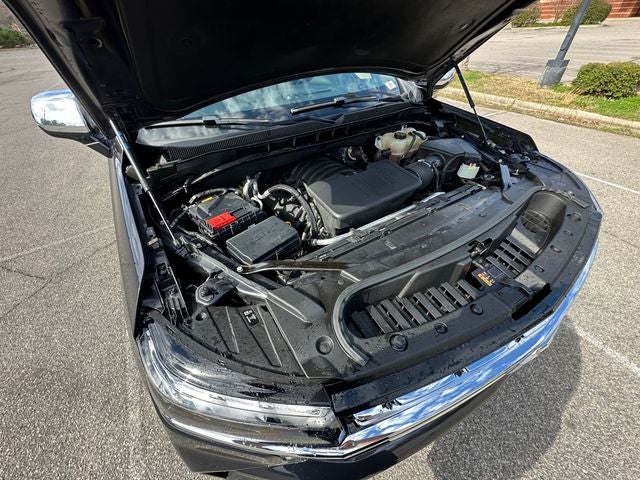 Equipped with Preferred Equipment Group 1LZ (1st & 2nd Row Color-Keyed Carpeted Floor Mats, 3rd Row 60/40 Power-Folding Split-Bench, Auto-Dimming Inside Rear-View Mirror, Bose 10-Speaker Surround w/CenterPoint, Bright Front & Rear Door Sill Plates, Chrome Door Handles w/Body-Color Strip, Chrome Mirror Caps, Color-Keyed Carpeting Floor Covering, Driver & Front Outboard Passenger Airbags, Dual Exhaust System, Enhanced Driver Information Center, Floor Console, Hands-Free Rear Power Programmable Liftgate, Heated & Ventilated Driver & Front Passenger Seats, Heated 2nd Row Outboard Seats, Heated Driver & Front Passenger Seats, Heated Steering Wheel, Infotainment Display, Lane Change Alert w/Side Blind Zone Alert, LED Daytime Running Lamps, Memory Settings, Outside Heated Power-Adjustable Mirrors, Power Release 2nd Row Bucket Seats, Power Tilt & Telescopic Steering Column, Rear Cross Traffic Alert, Remote Start, Safety Alert Seat, SiriusXM Radio w/360L, Universal Home Remote, Wireless Charging, and Wrapped Steering Wheel), Navigation System, 10 Speakers, 20 x 9 Polished Aluminum Wheels, 3.23 Rear Axle Ratio, 3rd row seats: split-bench, 4-Wheel Disc Brakes, ABS brakes, Adaptive suspension, Air Conditioning, Alloy wheels, AM/FM radio: SiriusXM with 360L, Apple CarPlay/Android Auto, Auto High-beam Headlights, Auto-dimming door mirrors, Auto-dimming Rear-View mirror, Auto-leveling suspension, Automatic temperature control, Brake assist, Bumpers: body-color, Compass, Delay-off headlights, Deleted 3 Years of Remote Access, Driver door bin, Driver vanity mirror, Dual front impact airbags, Dual front side impact airbags, Electronic Stability Control, Emergency communication system: OnStar and Chevrolet connected services capable, Four wheel independent suspension, Front anti-roll bar, Front Bucket Seats, Front Center Armrest, Front dual zone A/C, Front reading lights, Fully automatic headlights, Garage door transmitter, Heated door mirrors, Heated front seats, Heated rear seats, Heated steering wheel, Illuminated