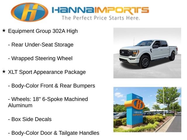 Why shop with Hanna Imports? We specialize in hand-selecting top-quality used cars, trucks, and SUVs for drivers across Raleigh, Durham, Cary, Chapel Hill, and the greater Triangle area of North Carolina. Our massive selection of 1,000+ vehicles on our Raleigh lot is carefully curated to include the most sought-after models, all priced below market value. We believe in transparency and efficiency—our vehicles are aggressively priced from the start, which means no haggling, no hassle, and no wasted time. The price you see is our absolute best price. Whether you're coming from Wake Forest, Apex, Garner, or anywhere in central NC, we’re committed to making your car-buying experience smooth, affordable, and enjoyable. Come see why Hanna Imports is one of the most trusted used car dealerships in North Carolina! Used Ford F-150 in Raleigh. Used Ford F-150 in North Carolina, Equipment Group 302A High (10-Way Power Driver & Passenger Seats, 8 Productivity Screen in Instrument Cluster, Class IV Trailer Hitch Receiver, Dual Zone Electronic Automatic Temperature Control, Heated Front Seats, Intelligent Access w/Push Button Start, LED Reflector Headlamps, LED Sideview Mirror Spotlights, Onboard 400W Outlet, Power Glass Heated Sideview Mirrors, Rear Under-Seat Storage, Remote Start System w/Remote Tailgate Release, SYNC 4 w/Enhanced Voice Recognition, Wrapped Steering Wheel, Zone Lighting, Auto-Dimming Rear-View Mirror, Radio: AM/FM SiriusXM w/360L, and SecuriCode Drivers Side Keyless-Entry Keypad), GVWR: 6,470 lbs Payload Package, XLT Chrome Appearance Package (2-Bar Style Grille w/Chrome 2 Minor Bars, Bright Polished Step Bars, Chrome Door & Tailgate Handles w/Body-Color Bezel, Chrome Single-Tip Exhaust, and Wheels: 18 Chrome-Like PVD), XLT Sport Appearance Package (Accent-Color Step Bars, Black 2-Bar Style Grille w/Black Surround/Accents, Body-Color Door & Tailgate Handles, Body-Color Front & Rear Bumpers, Box Side Decals, Unique Sport Cloth 40/Console/40 Front-Seats, and Wheels: 18 6-Spoke Machined Aluminum), F-150 XLT, 4D SuperCrew, 4WD, Exterior Parking Camera Rear, 4-Wheel Disc Brakes, 6 Speakers, ABS brakes, Air Conditioning, Alloy wheels, AM/FM radio, Auto High-beam Headlights, Brake assist, Bumpers: chrome, Cloth 40/20/40 Front Seat, Compass, Delay-off headlights, Driver door bin, Driver vanity mirror, Dual front impact airbags, Dual front side impact airbags, Electronic Stability Control, Emergency communication system: SYNC 4 911 Assist, Front anti-roll bar, Front Center Armrest w/Storage, Front fog lights, Front reading lights, Front wheel independent suspension, Fully automatic headlights, Heated door mirrors, Illuminated entry, Low tire pressure warning, Occupant sensing airbag, Outside temperature display, Overhead airbag, Overhead console, Panic alarm, Passenger door bin, Passenger vanity mirror, Power door mirrors, Power steering, Power windows, Power-Adjustable Pedals, Power-Sliding Rear Window, Radio data syst