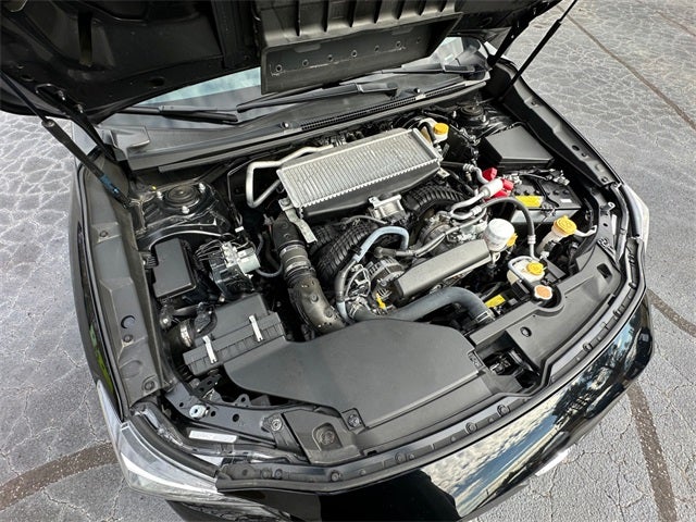 Equipped with Standard Model (6MT), 4-Wheel Disc Brakes, 6 Speakers, ABS brakes, Air Conditioning, All-Weather Floor Liners, Alloy wheels, AM/FM radio: SiriusXM, Auto High-beam Headlights, Auto-dimming Rear-View mirror, Automatic temperature control, Brake assist, Bumpers: body-color, Cargo Tray, Cloth Upholstery w/Red Stitching, Driver door bin, Driver vanity mirror, Dual front impact airbags, Dual front side impact airbags, Electronic Stability Control, Emergency communication system: STARLINK Safety and Security (Subscription Required), Exterior Parking Camera Rear, Four wheel independent suspension, Front anti-roll bar, Front Bucket Seats, Front Center Armrest, Front dual zone A/C, Front fog lights, Front reading lights, Fully automatic headlights, Heated door mirrors, Heated front seats, Illuminated entry, Knee airbag, Leather Shift Knob, Leather steering wheel, LED Upgrade, Low tire pressure warning, Occupant sensing airbag, Outside temperature display, Overhead airbag, Overhead console, Panic alarm, Passenger door bin, Passenger vanity mirror, Performance Design Heated Front Bucket Seats, Power door mirrors, Power steering, Power windows, Radio data system, Radio: Subaru STARLINK 11.6 Multimedia Plus Sys, Rear anti-roll bar, Rear seat center armrest, Rear window defroster, Remote keyless entry, Security system, Speed control, Speed-sensing steering, Split folding rear seat, Spoiler, Sport steering wheel, STARLINK/Apple CarPlay/Android Auto, Steering wheel mounted audio controls, Tachometer, Telescoping steering wheel, Tilt steering wheel, Traction control, Trip computer, Variably intermittent wipers, and Wheels: 18 x 8.5 Dark Gray Finish Alum Alloy.