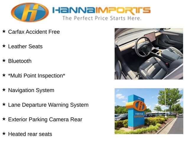 Why shop with Hanna Imports? We specialize in hand-selecting top-quality used cars, trucks, and SUVs for drivers across Raleigh, Durham, Cary, Chapel Hill, and the greater Triangle area of North Carolina. Our massive selection of 1,000+ vehicles on our Raleigh lot is carefully curated to include the most sought-after models, all priced below market value. We believe in transparency and efficiency—our vehicles are aggressively priced from the start, which means no haggling, no hassle, and no wasted time. The price you see is our absolute best price. Whether you're coming from Wake Forest, Apex, Garner, or anywhere in central NC, we’re committed to making your car-buying experience smooth, affordable, and enjoyable. Come see why Hanna Imports is one of the most trusted used car dealerships in North Carolina! Used Tesla Model 3 in Raleigh. Used Tesla Model 3 in North Carolina, Exterior Parking Camera Rear, Heated front seats, Heated rear seats, Lane Departure Warning System, Navigation System, 4-Wheel Disc Brakes, 8 Speakers, ABS brakes, Air Conditioning, Alloy wheels, Audio memory, Auto High-beam Headlights, Auto-dimming door mirrors, Auto-dimming Rear-View mirror, Automatic temperature control, Brake assist, Bumpers: body-color, Compass, Delay-off headlights, Driver door bin, Driver vanity mirror, Dual front impact airbags, Dual front side impact airbags, Electronic Stability Control, Emergency communication system, Four wheel independent suspension, Front anti-roll bar, Front Bucket Seats, Front Center Armrest, Front dual zone A/C, Front reading lights, Fully automatic headlights, Genuine wood dashboard insert, Heated door mirrors, Heated Front Bucket Seats, Heated steering wheel, HVAC memory, Illuminated entry, Knee airbag, Low tire pressure warning, Memory seat, Occupant sensing airbag, Outside temperature display, Overhead airbag, Passenger door bin, Passenger vanity mirror, Power door mirrors, Power driver seat, Power passenger seat, Power steering, Power windows, Premium Seat Trim, Radio data system, Radio: Upgraded Audio System, Rain sensing wipers, Rear reading lights, Rear seat center armrest, Rear window defroster, Security system, Speed control, Speed-sensing steering, Split folding rear seat, Steering wheel memory, Steering wheel mounted A/C controls, Steering wheel mounted audio controls, Telescoping steering wheel, Tilt steering wheel, Traction control, Trip computer, Variably intermittent wipers, and Wheels: 18 x 8.5 Aero.