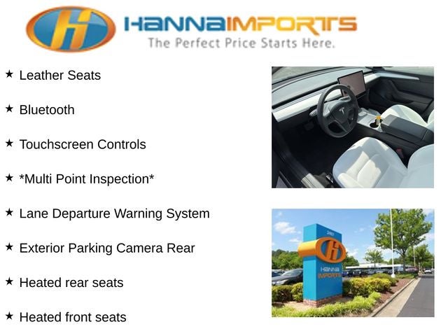 Why shop with Hanna Imports? We specialize in hand-selecting top-quality used cars, trucks, and SUVs for drivers across Raleigh, Durham, Cary, Chapel Hill, and the greater Triangle area of North Carolina. Our massive selection of 1,000+ vehicles on our Raleigh lot is carefully curated to include the most sought-after models, all priced below market value. We believe in transparency and efficiency—our vehicles are aggressively priced from the start, which means no haggling, no hassle, and no wasted time. The price you see is our absolute best price. Whether you're coming from Wake Forest, Apex, Garner, or anywhere in central NC, we’re committed to making your car-buying experience smooth, affordable, and enjoyable. Come see why Hanna Imports is one of the most trusted used car dealerships in North Carolina! Used Tesla Model 3 in Raleigh. Used Tesla Model 3 in North Carolina, Exterior Parking Camera Rear, Heated front seats, Heated rear seats, Lane Departure Warning System, 4-Wheel Disc Brakes, 8 Speakers, ABS brakes, Air Conditioning, Alloy wheels, Audio memory, Auto High-beam Headlights, Auto-dimming door mirrors, Auto-dimming Rear-View mirror, Automatic temperature control, Brake assist, Bumpers: body-color, Compass, Delay-off headlights, Driver door bin, Driver vanity mirror, Dual front impact airbags, Dual front side impact airbags, Electronic Stability Control, Emergency communication system, Four wheel independent suspension, Front anti-roll bar, Front Bucket Seats, Front Center Armrest, Front dual zone A/C, Front reading lights, Fully automatic headlights, Genuine wood dashboard insert, Heated door mirrors, Heated Front Bucket Seats, Heated steering wheel, HVAC memory, Illuminated entry, Knee airbag, Low tire pressure warning, Memory seat, Navigation System, Occupant sensing airbag, Outside temperature display, Overhead airbag, Passenger door bin, Passenger vanity mirror, Power door mirrors, Power driver seat, Power passenger seat, Power steering, Power windows, Premium Seat Trim, Radio data system, Radio: Upgraded Audio System, Rain sensing wipers, Rear reading lights, Rear seat center armrest, Rear window defroster, Security system, Speed control, Speed-sensing steering, Split folding rear seat, Steering wheel memory, Steering wheel mounted A/C controls, Steering wheel mounted audio controls, Telescoping steering wheel, Tilt steering wheel, Traction control, Trip computer, Variably intermittent wipers, and Wheels: 18 x 8.5 Aero.